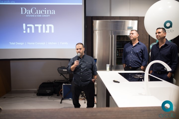 אירוע חשיפת האפליקציה של arcdb הפלטפורמה המובילה לענף הבניה בישראל, בסניף הדגל של מטבחי DaCucina ברח' הלחי בבני ברק, שיתוף פעולה חדש בין החברות.