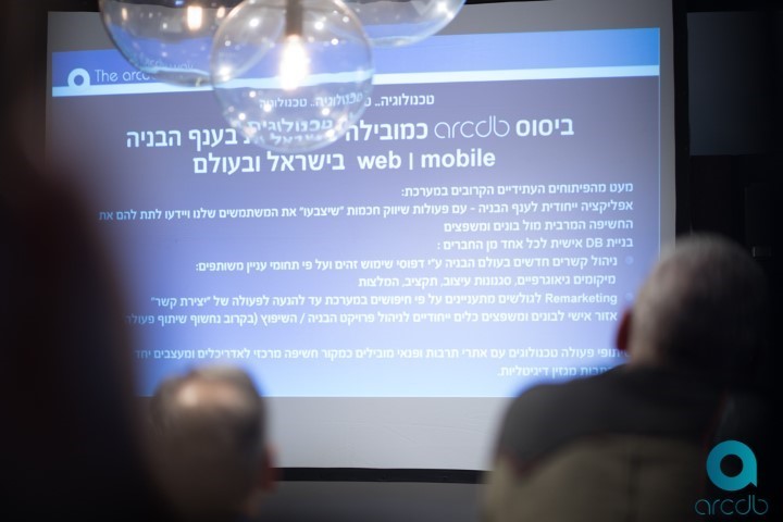 במהלך הערב הוצגה האפליקציה הראשונה בעולם לענף הבניה מבית היוצר של arcdb אפליקציה ייחודית המחברת בין בונים ומשפצים לקהילה מקצועית מובילה. אנחנו מזמינים אתכם להוריד את האפליקציה למכשירים הניידים ולהיחשף למיטב בעלי המקצוע, ספקים וחברות ומבצעים ייחודים.