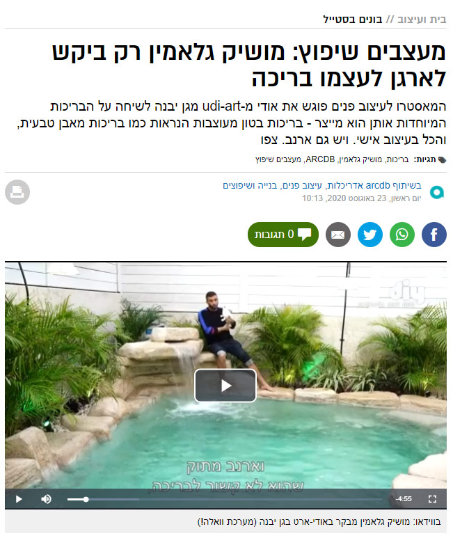 המאסטרו לעיצוב פנים פוגש את אודי מ-udi-art מגן יבנה לשיחה על הבריכות המיוחדות אותן הוא מייצר - בריכות בטון מעוצבות הנראות כמו בריכות מאבן טבעית, והכל בעיצוב אישי. ויש גם ארנב. קרא עוד >>