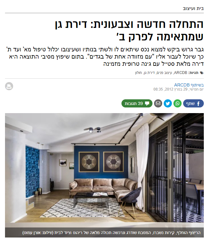 גבר גרוש ביקש למצוא נכס שיתאים לו ולשתי בנותיו ושעיצובו יכלול טיפול מא' ועד ת' כך שיוכל לעבור אליו "עם מזוודה אחת של בגדים". בתום שיפוץ מסיבי התוצאה היא דירה מלאת סטייל עם גינה טרופית מזמינה קרא עוד >>