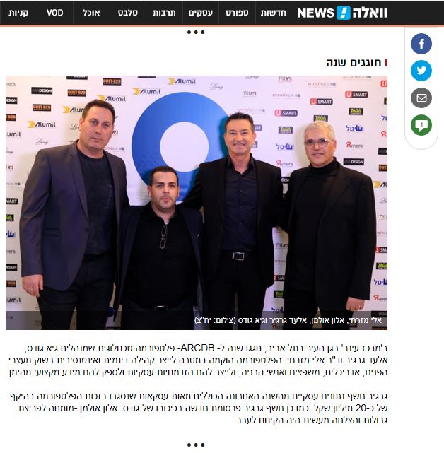 "בתוך שנה arcdb שינתה את כללי המשחק וייצרה קהילה דינמית שהובילה לאלפי עסקאות בענף הבניה"