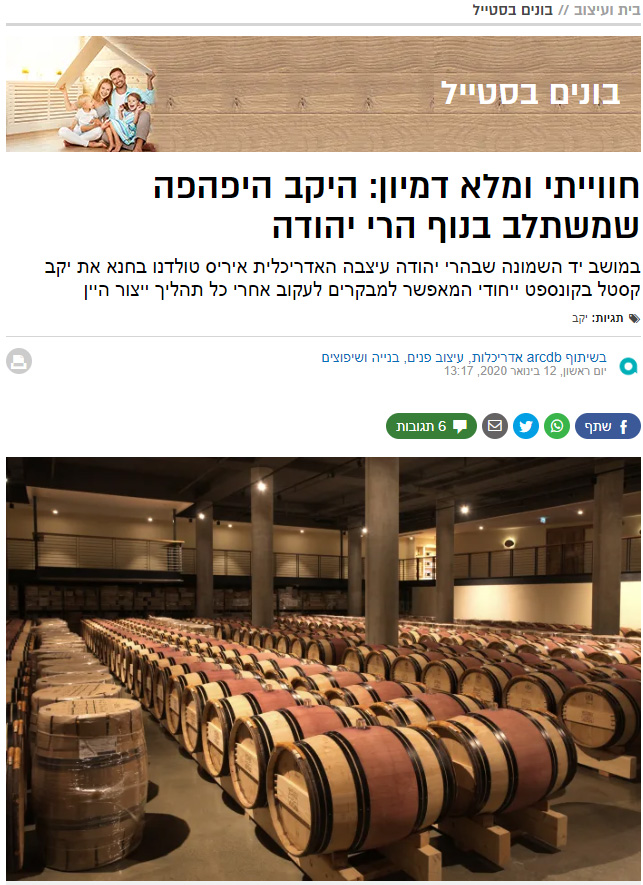 במושב יד השמונה שבהרי יהודה עיצבה האדריכלית איריס טולדנו בחנא את יקב קסטל בקונספט ייחודי המאפשר למבקרים לעקוב אחרי כל תהליך ייצור היין קרא עוד >>