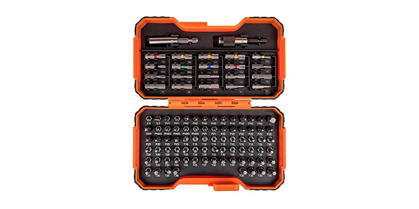 סט ביטים 100 יח' במארז פלסטיק קשיח הכולל: ביטים שטוחים,פיליפס ,פוזידרייב , טורקס טאמפר,טורקס,אלן. מיוצר מסגסוגת של פלדת S2 מה שמקנה לביטים דרגת איכות גבוהה ועיכוב השחיקה גם כשמשתמשים בברגים הלא נכונים ! הסט מכסה כמעט  את כל הביטים שתצטרכו אז חובה שיהיה לכם. ,תוצרת BAHCO