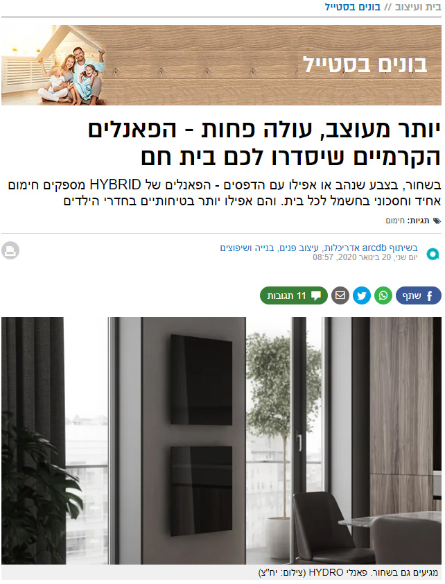 בשחור, בצבע שנהב או אפילו עם הדפסים - הפאנלים של HYBRID מספקים חימום אחיד וחסכוני בחשמל לכל בית. והם אפילו יותר בטיחותיים בחדרי הילדים קרא עוד >>