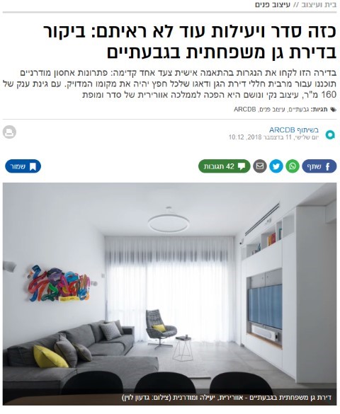 בדירה הזו לקחו את הנגרות בהתאמה אישית צעד אחד קדימה: פתרונות אחסון מודרניים תוכננו עבור מרבית חללי דירת הגן ודאגו שלכל חפץ יהיה את מקומו המדויק. עם גינת ענק של 160 מ"ר, עיצוב נקי ונושם היא הפכה לממלכה אוורירית של סדר ומופת קרא עוד >>