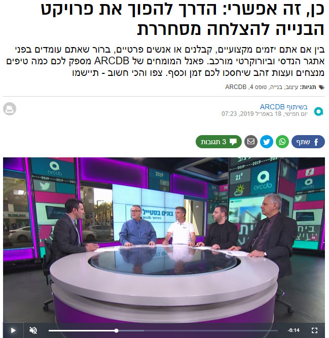 בין אם אתם יזמים מקצועיים, קבלנים או אנשים פרטיים, ברור שאתם עומדים בפני אתגר הנדסי וביורוקרטי מורכב. פאנל המומחים של ARCDB מספק לכם כמה טיפים מנצחים ועצות זהב שיחסכו לכם זמן וכסף. צפו והכי חשוב - תיישמו קרא עוד >>