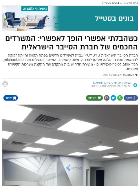 חברת הסייבר הישראלית PCYSYS עברה למשרדים חדשים בפתח תקווה והייתה זקוקה להתאמה מהירה ומלאה שלהם לצרכיה. משה קשמקוב, המייסד והבעלים של michael-tech, הפך אותם לסופר-טכנולוגיים - מיצירת חדר ישיבות מתקדם ועד התקנת מערכות תקשורת ואבטחה קרא עוד >>