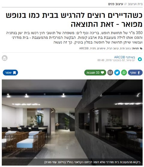350 מ"ר של תחושת חופש, בריכה ונוף לים: משפחה של תושבי חוץ רכשו בית ישן בנתניה והפכו אותו לוילה מעוצבת בת ארבע קומות. הבקשה המרכזית מהמעצבת - בית מודרני ועכשווי שיתן תחושה של חופשה במלון בוטיק. כך זה נעשה קרא עוד >>