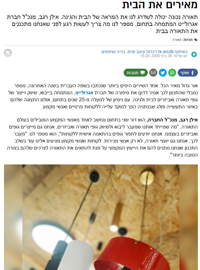 תאורה נכונה יכולה לשדרג לנו את המראה של הבית והגינה. אילן רגב, מנכ"ל חברת אגרולייט המתמחה בתחום, מספר לנו מה צריך לעשות רגע לפני שאנחנו מתכננים את התאורה בבית קרא עוד >>