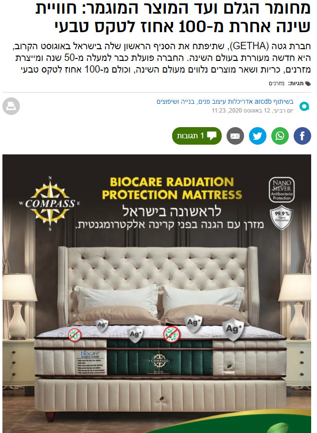 חברת גטה (GETHA), שתיפתח את הסניף הראשון שלה בישראל באוגוסט הקרוב, היא חדשה מעוררת בעולם השינה. החברה פועלת כבר למעלה מ-50 שנה ומייצרת מזרנים, כריות ושאר מוצרים נלווים מעולם השינה, וכולם מ-100 אחוז לטקס טבעי קרא עוד >>