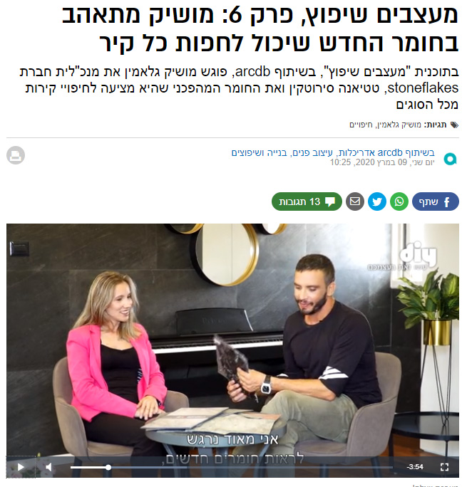 בתוכנית "מעצבים שיפוץ", בשיתוף arcdb, פוגש מושיק גלאמין את מנכ"לית חברת stoneflakes, טטיאנה סירוטקין ואת החומר המהפכני שהיא מציעה לחיפויי קירות מכל הסוגים קרא עוד >>