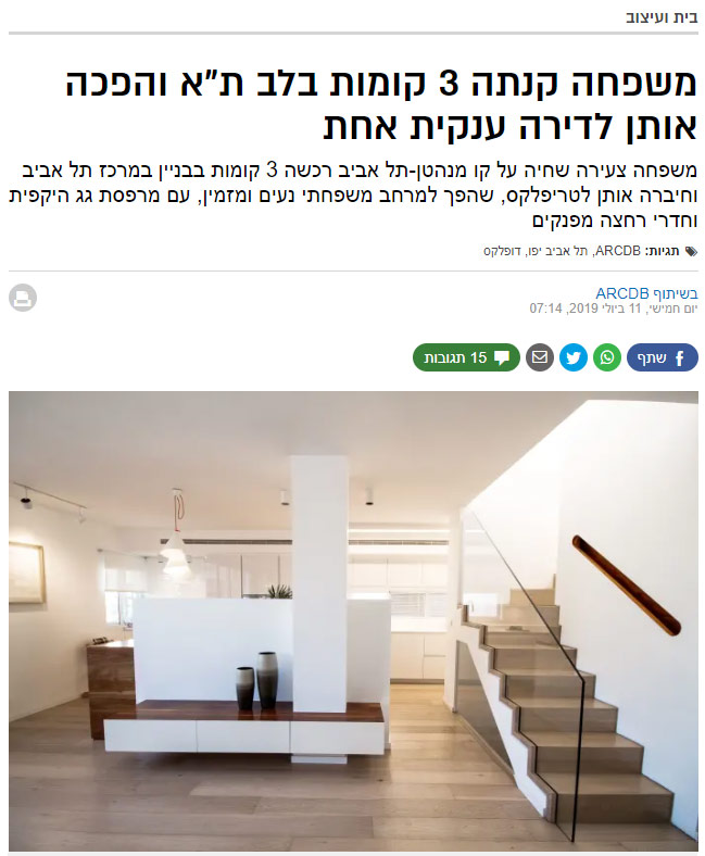 משפחה קנתה 3 קומות בלב ת”א והפכה אותן לדירה ענקית אחת