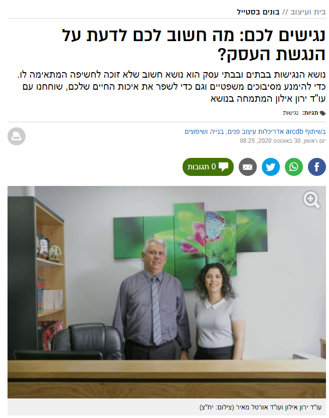 נושא הנגישות בבתים ובבתי עסק הוא נושא חשוב שלא זוכה לחשיפה המתאימה לו. כדי להימנע מסיבוכים משפטיים וגם כדי לשפר את איכות החיים שלכם, שוחחנו עם עו"ד ירון אילון המתמחה בנושא קרא עוד >>