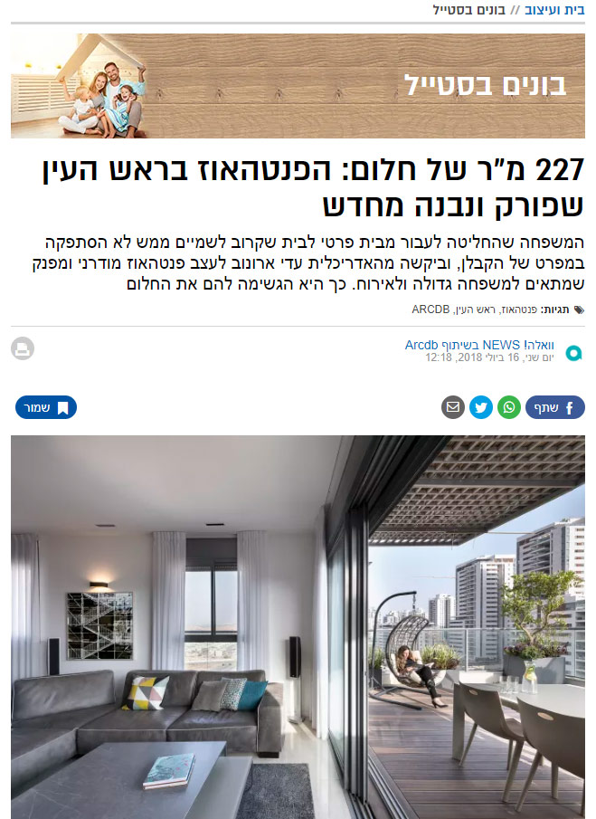המשפחה שהחליטה לעבור מבית פרטי לבית שקרוב לשמיים ממש לא הסתפקה במפרט של הקבלן, וביקשה מהאדריכלית עדי ארונוב לעצב פנטהאוז מודרני ומפנק שמתאים למשפחה גדולה ולאירוח. כך היא הגשימה להם את החלום קרא עוד >>