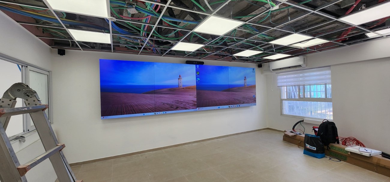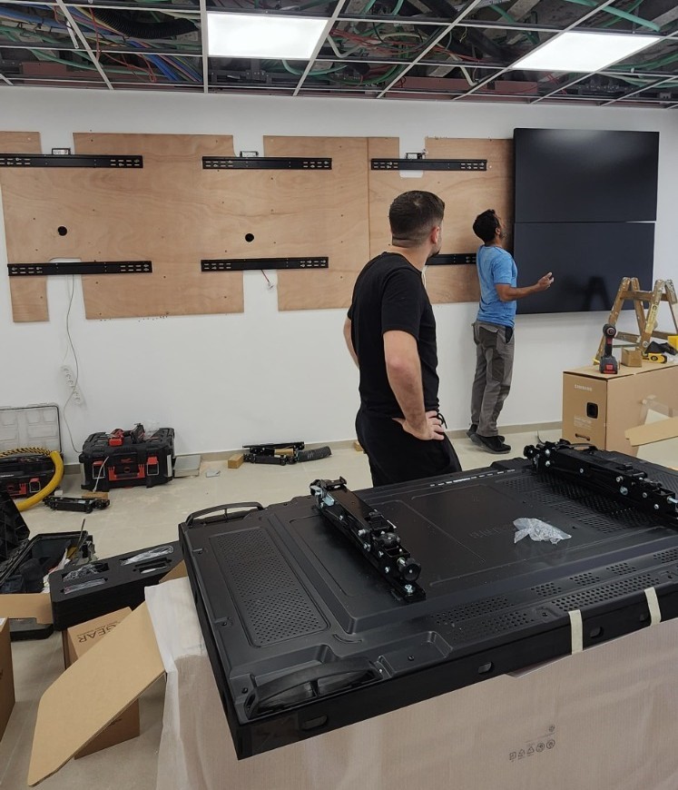קיר מסכים ענק לעיריית מודיעין תהליך ההקמה