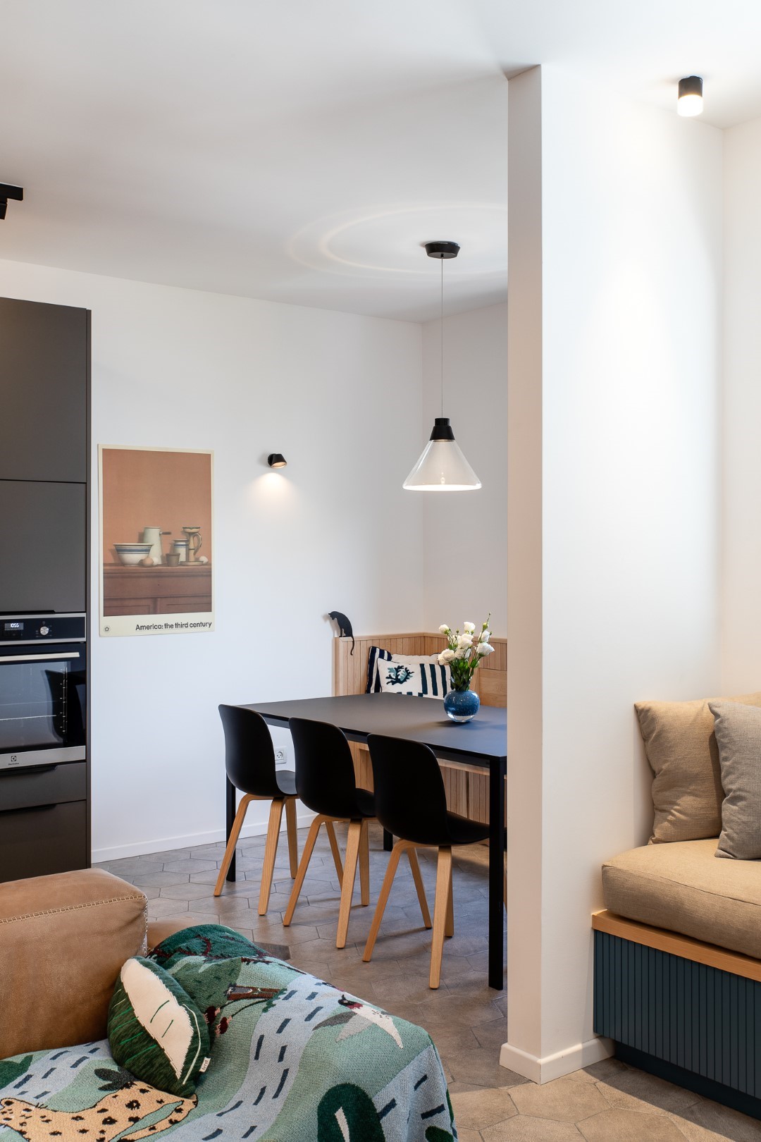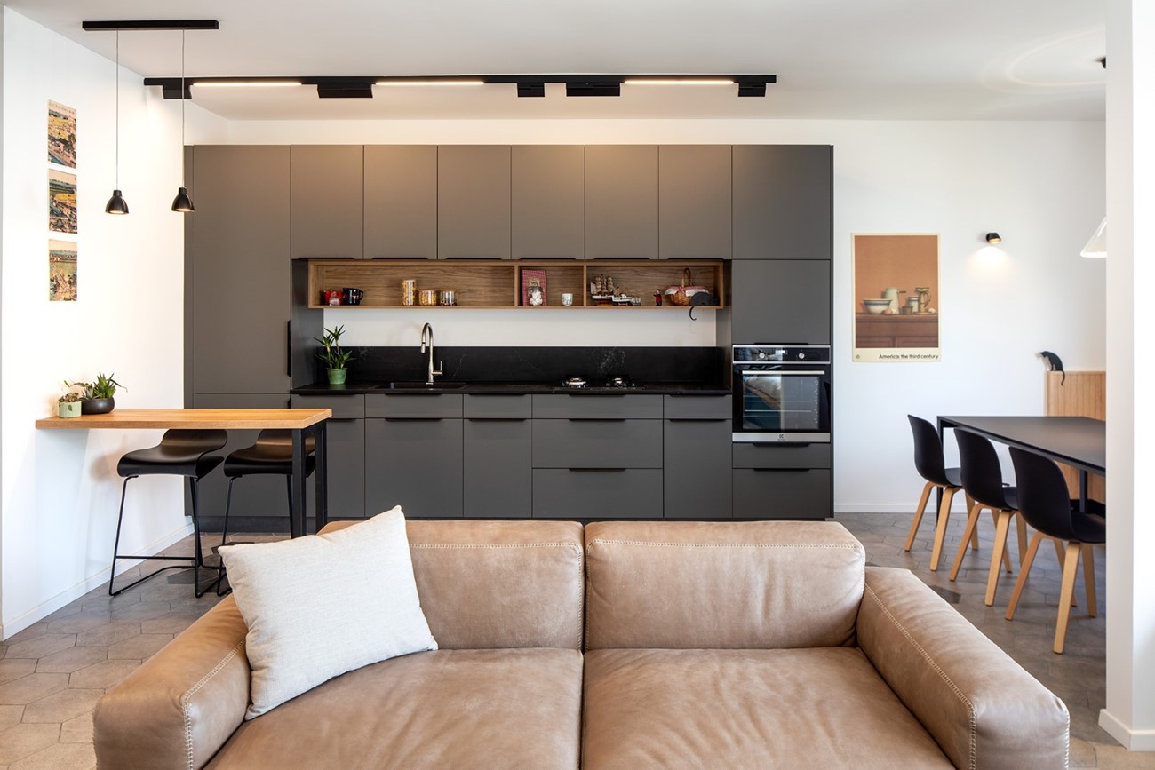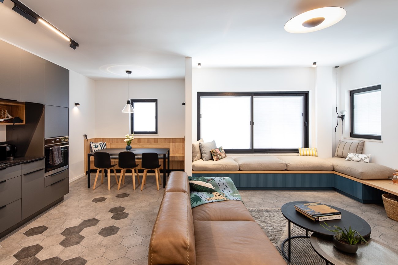 דירת נופש למשפחה, בדגש על קוי עיצוב נקיים, אחסון יעיל ופינוק.