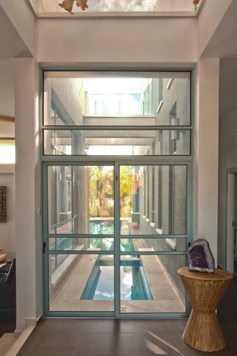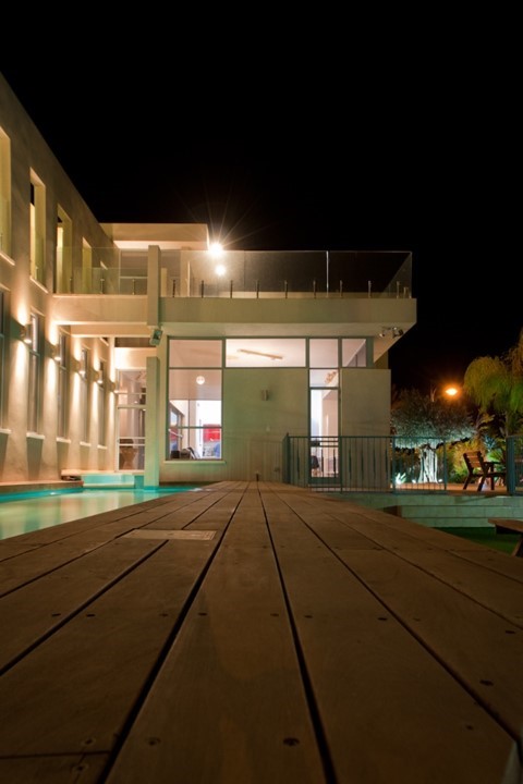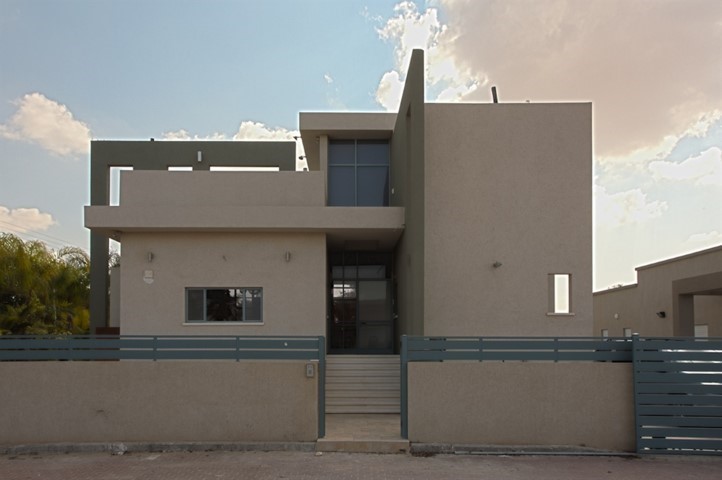 בית המגורים הראשון שתכננתי ללקוח אידיאלי שנתן לי חרות אמנותית מוחלטת. החופש שנתן הלקוח אפשר לי לייצר פרויקט שלחלוטין מייצג ומאפיין את תפיסת התכנון שמלווה אותי עד עצם היום הזה. התוצאה החזותית הינה בית בסגנון מודרני עכשווי מינימליסטי המייצר מרחב מחיה בו הגבולות בין החוץ לפנים מטושטשים לחלוטין. הנוף ומכיבי החצר ניבטים ונשקפים פנימה לבית בכל מקום ונקודה במרחב , הבית מציץ לתוך עצמו בהגדרת יחסי הפנים והחוץ ולמעשה מהווה הנוף של עצמו. בריכת השחייה שממוקמת במרכז החצר כשהיא צמודת דופן למבנה ניבטת מלובי הכניסה של הבית וכך הופכת למאפיין אדריכלי ראשון בחוויית המשתמש. הבית הוא מרחב מחיה מפנק המאפשר רגיעה ומנוחה לדיירי הבית בכל רגע נתון.