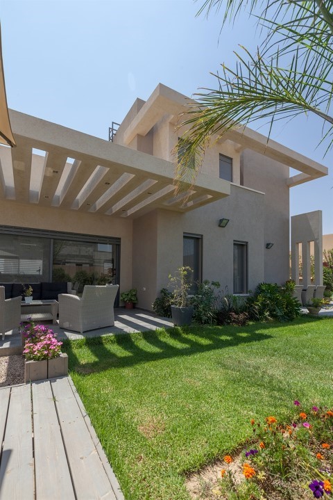 הפרויקט הינו מבנה מגורים דו קומתי. קומת הקרקע מתוכננת לקיום חיי המשפחה במרחב חד קומתי, הקומה העליונה תוכננה כיחידות אירוח מפנקות לבני המשפחה ואורחים שמגיעים מרחוק וכמעט תמיד ליותר מים אחד. בתכנון המבנה ניתנה חשיבות גבוה ביותר לתכנון אקלימי בשל תנאי האקלים המדבריים ולכן נבחר חתך קיר כפול הכולל שכבת בידוד כבה בתוך הקיר ע"מ להתגבר על הפרשי הטמפרטורה בין היום ללילה כמו כן הבית טויח בגוונים בהירים ע"מ למזער קליטת חום השמש במעטפת המבנה. הפרויקט כולל ג'קוזי מפנק בחצר הבית שמהווה תוספת מפנקת לכל חשיבת האירוח שהלקוחות שאפו לייצר לעצמם. למרות הפרוגרמה היומרנית נעשה מאמץ לשוות למבנה מראה קל ואוורירי ע"י פרגולות מרחפות שממסגרות את הרקיע ומייצרות מרחבי צל אפקטיביים בנקודות ואזורים קריטיים.