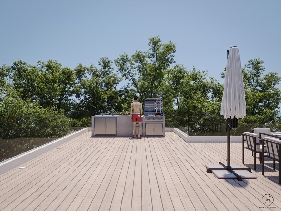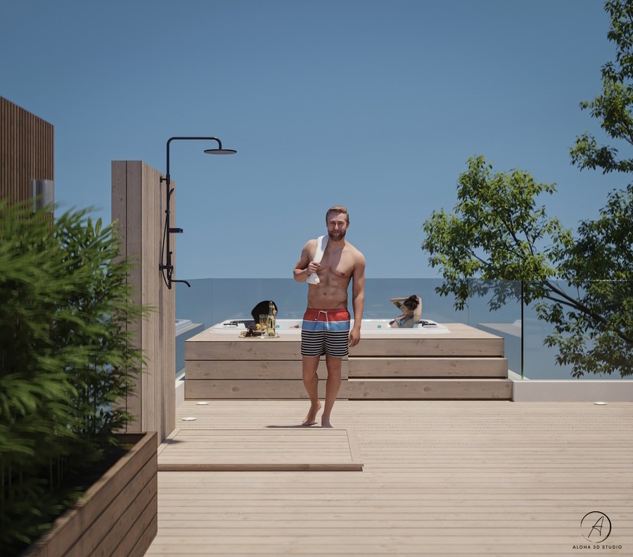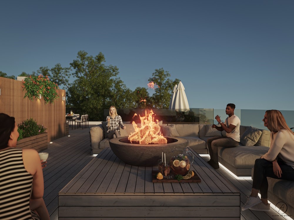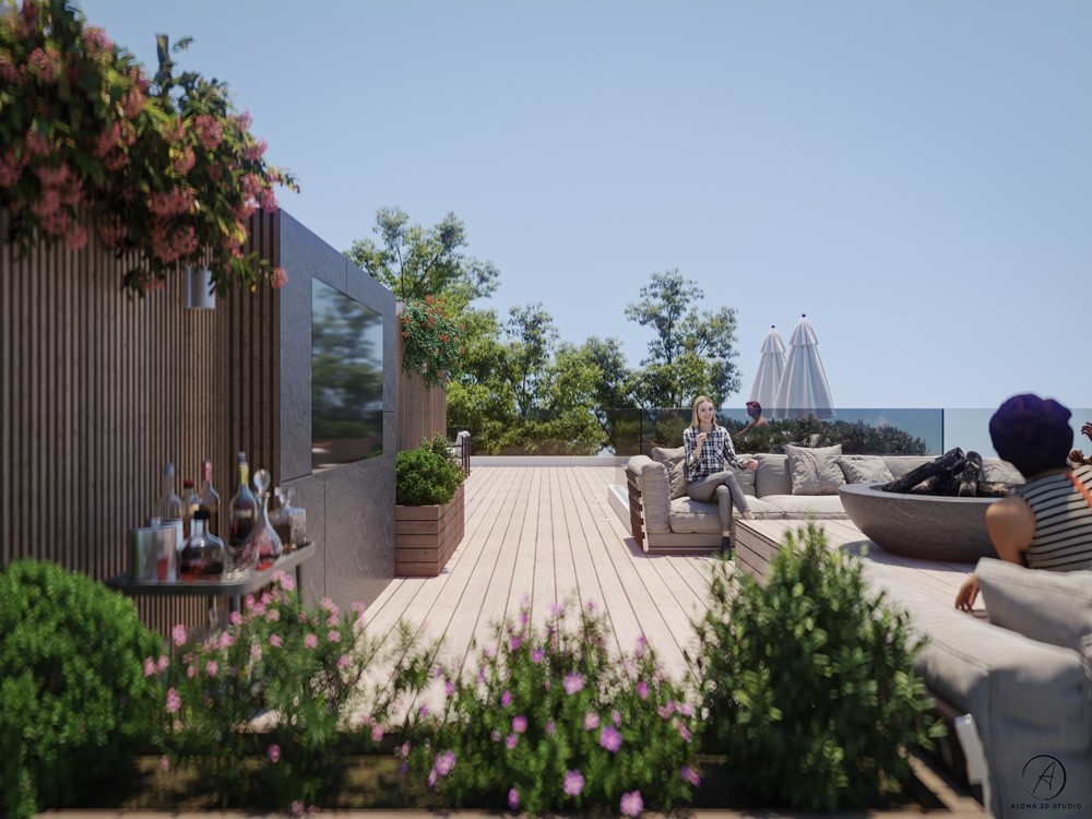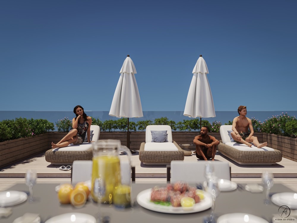 נדמיה שיווקית לגג שירת פנטהאוס - מטרת ההדמיה: להראות לקונה הפוטנציאלי אפשרות שימוש בגג - כרגע הוא ריק.