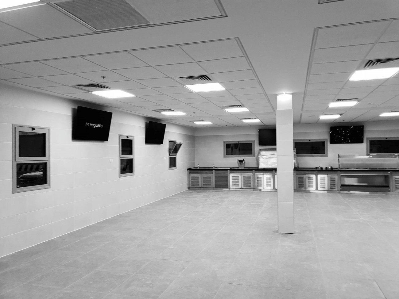חדר אוכל מפעל מגנזיום ים המלח .....450 מטר מיזוג ואויר צח מערכות איוורור פינוי עשן ומנדפים
