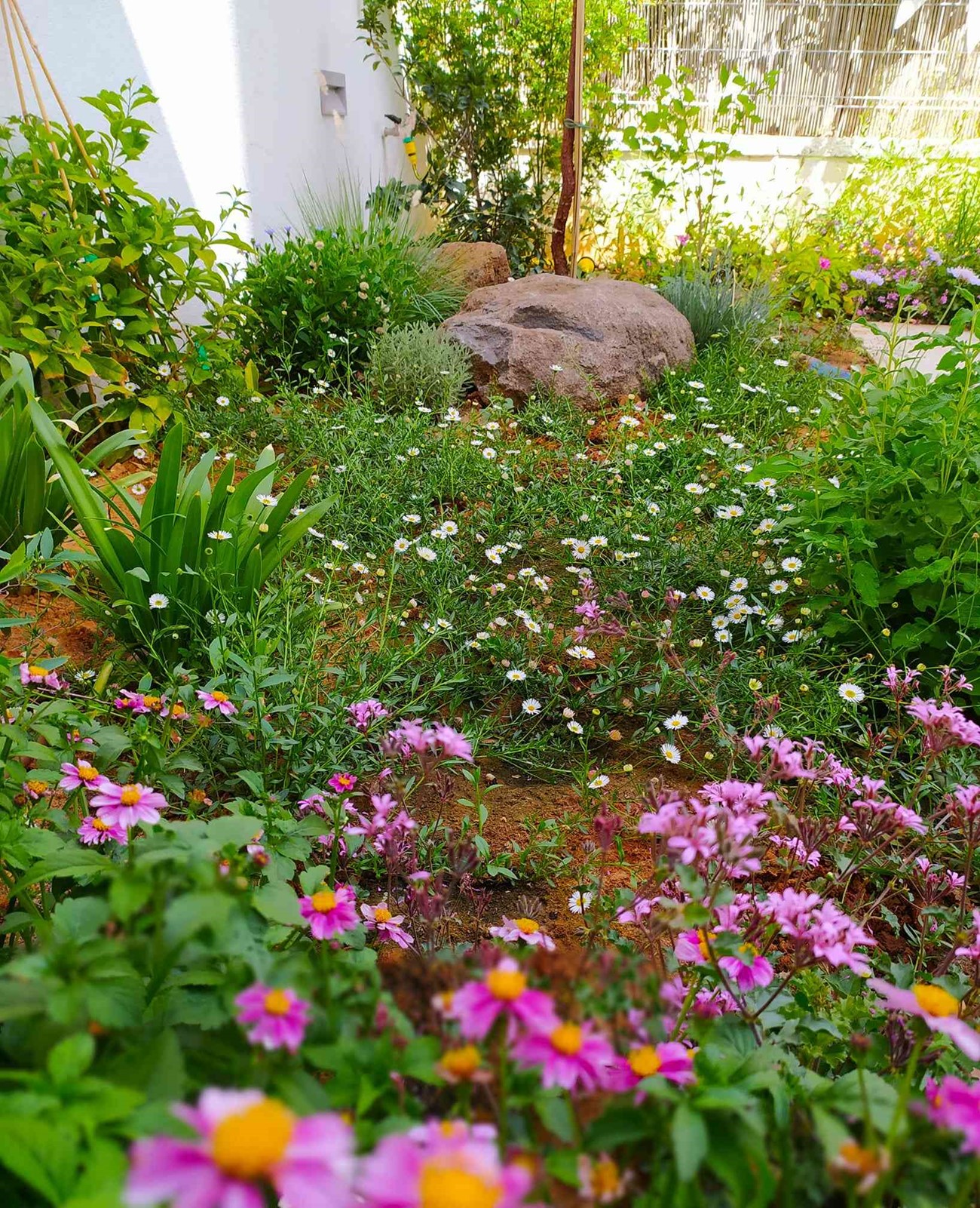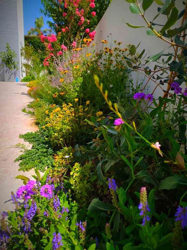 שתילה צפופה וצבעונית המשלבת צמחייה מקומית לצד צמחים בעלי אופי ים תיכוני התואם את האקלים הישראלי. הגינה משלבת צמחים בשלל טקסטורות ,צבעים, ריחות וגבהים.