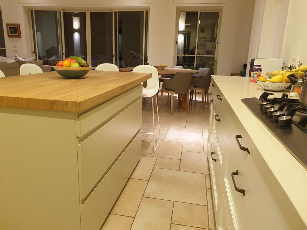 עיצוב הבית כלל העמדה מחודשת של כל החלל הציבורי בבית, כאשר הדרישה העיקרית הינה לייצר פינת ישיבה מחודשת הן באזור פינת האוכל שכלל לא הייתה קיימת לפני כן. וכמו כן נוצרה פינת עבודה נוספת במטבח, האי ובו גם כן מעבר ליצרית אחסון נוסף נוצרה בו כמובן עוד ישיבה נוספת למשפחה