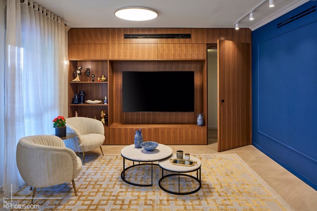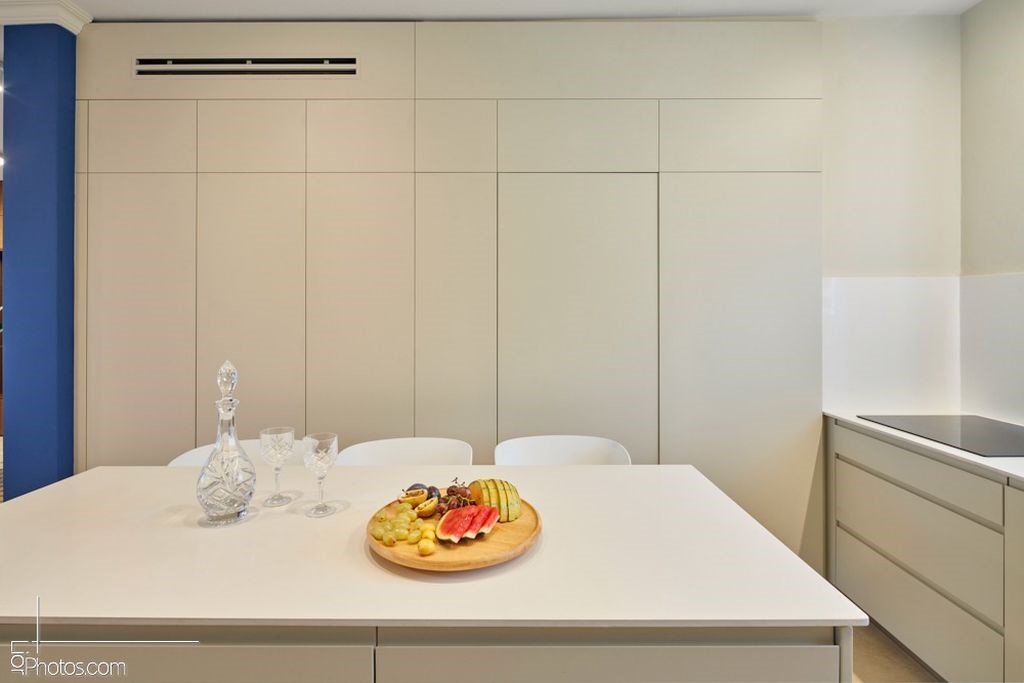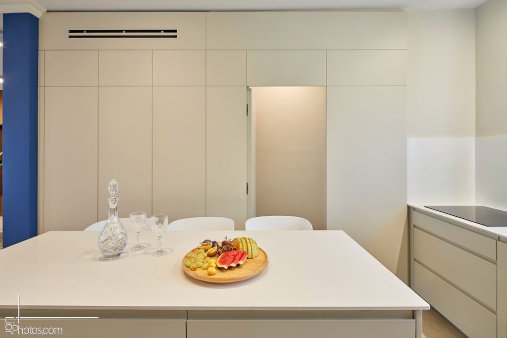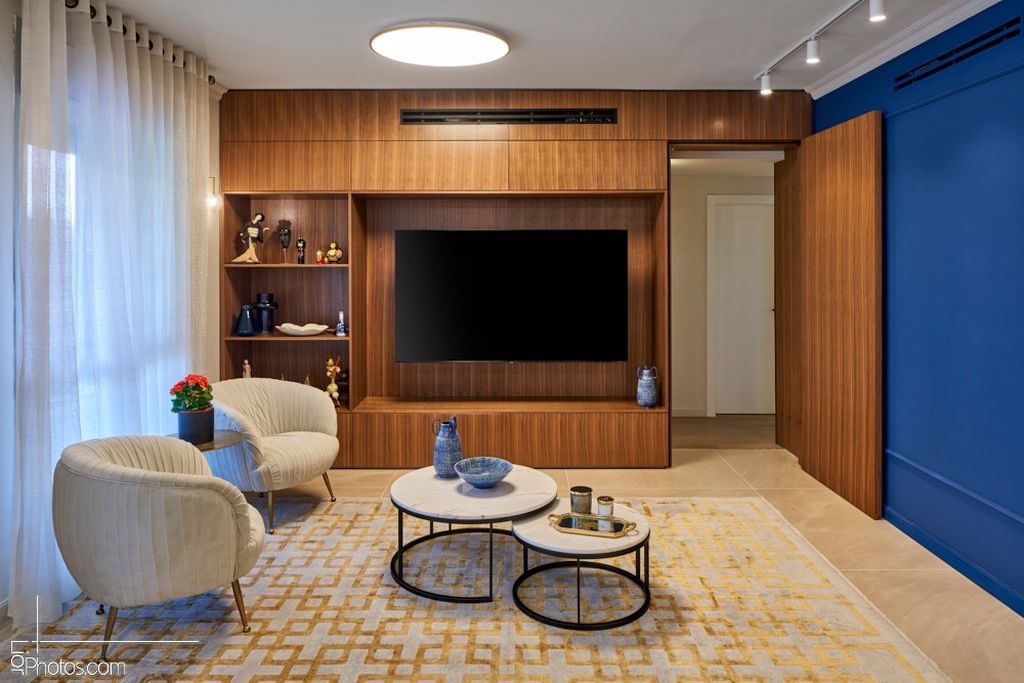 היא אמרה שיש לה דירה ברעננה שהיא רוצה ליצור במטבח חיפוי קיר שיכלול בתוכו יחידת מזווה גדולה ודלת נסתרת לחדר שירות, ובקיר הסלון היא רוצה ליצור סיפריה על כל הקיר עם מקום לחפצי נוי, מקום לאחסון וכמובן דלת נסתרת שממנה מגיעים לשאר חדרי הבית.