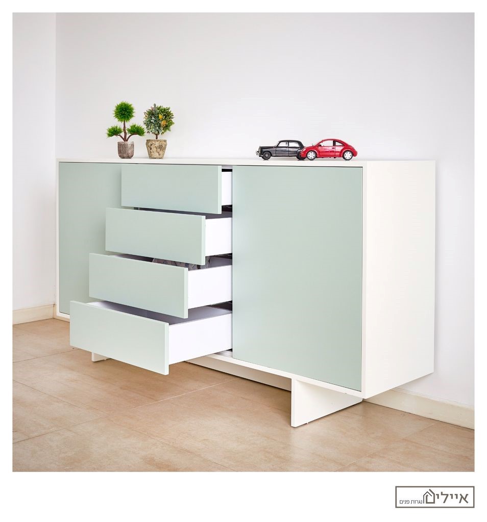 את השידה הם רצו הכי מנימליסטי שיש ומהנקודה הזו המעצבת יצעה לעיצוב. אני יכול לומר שאצל מעיין ודרור (הלקוחות) בחירת הגוונים לקחה זמן אך לא התייעשנו, ייצרנו להם עוד ועוד דוגמאות צבע עד שלבסוף זה קרה.