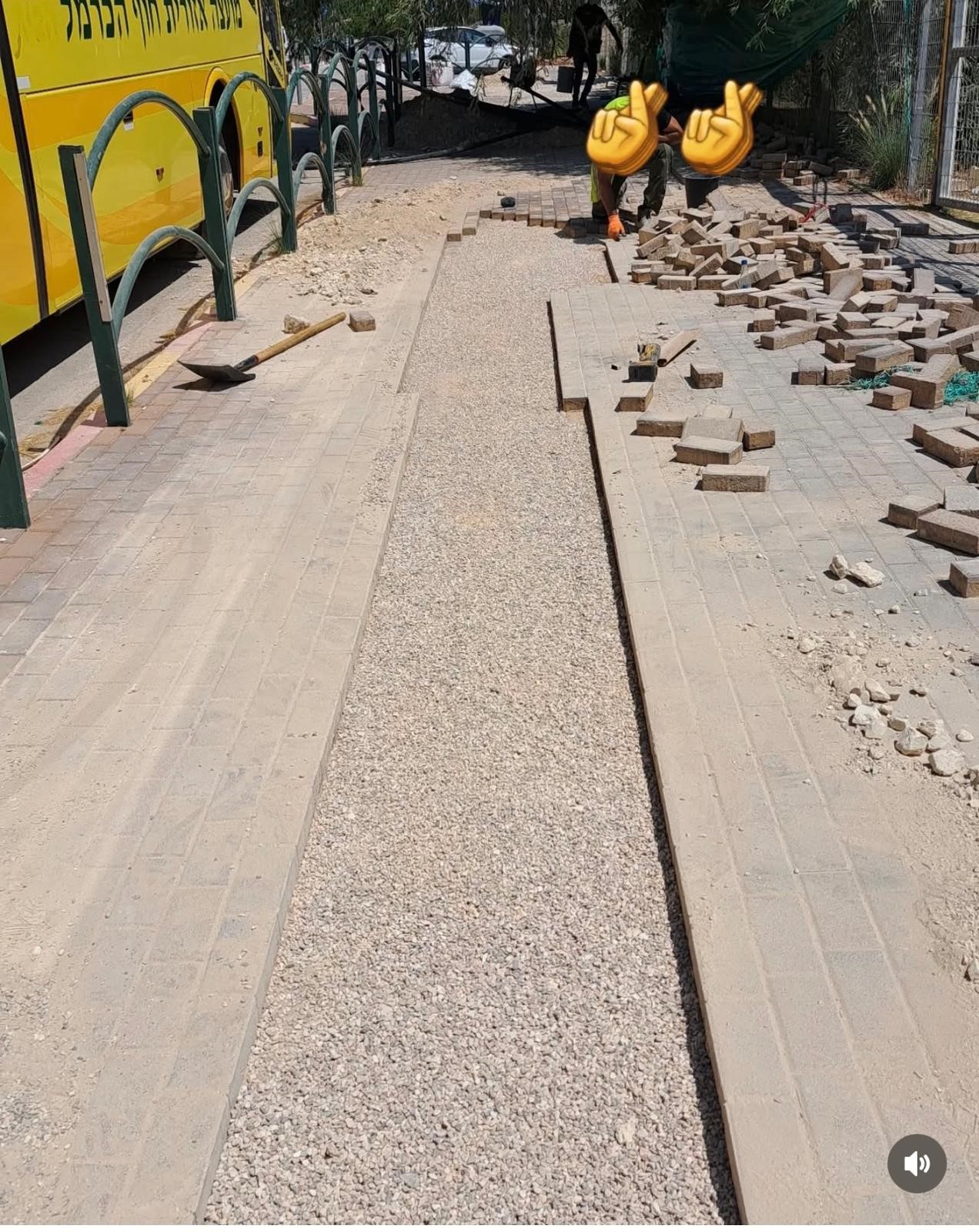 פירוק וריצוף משתלבות לאחר ביצוע עבודות חפירה, אתר עתלית