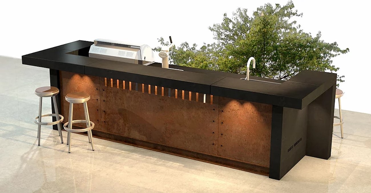 מידות מבנה 435/127 ס”מ דלפק בר ס”מ גובה 110 ממפלס הרצפה ברז דגם Concetto כרום נשלף תוצרת GROHE גרמניה כיור מלבני נירוסטה קוטר 59/40 ס”מ תוצרת BLANCO גרמניה 2 דלתות נירוסטה תוצרת RONDA איטליה (אחסון מתחת לכיור) מכונת קרח 21 BREMA ק”ג דגם CB184 זוג מגירות תרמיות נירוסטה תוצרת RONDA איטליה גריל “לינקס” 30 LYNX דגם L30AG דלת כפולה נירוסטה תוצרת RONDA איטליה (מתחת למתקן הגריל) מקרר לחוץ 146 ליטר, דלת שקופה מבודדת, תאורת פנים ופיקוד טמפרטורה תאורת LED דקורטיבית כפולה לחזית המטבח – גוון אור חם 10W (מוגן מים) כולל טיימר. לחזית המטבח – גוון אור חם 5W (מוגן מים)