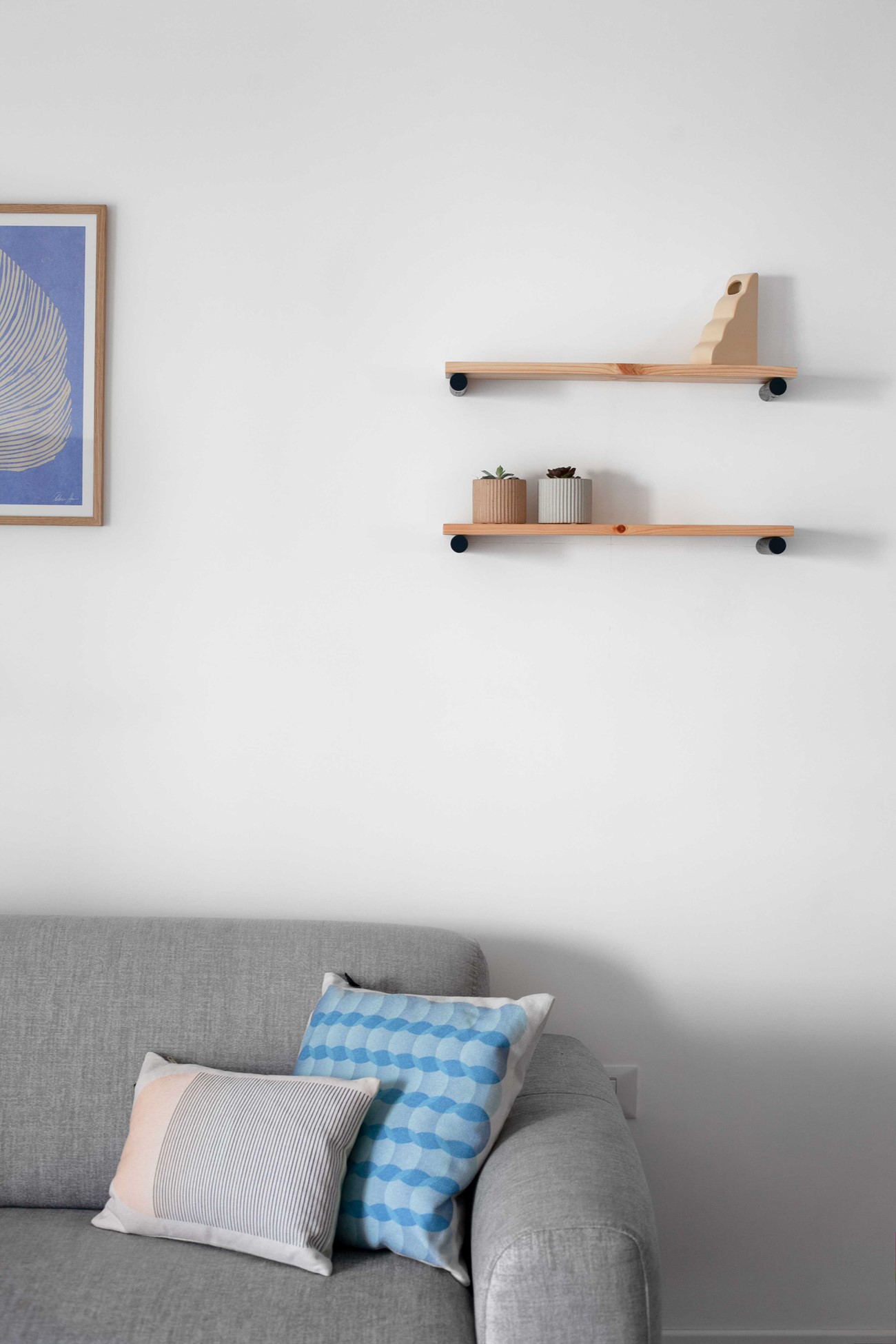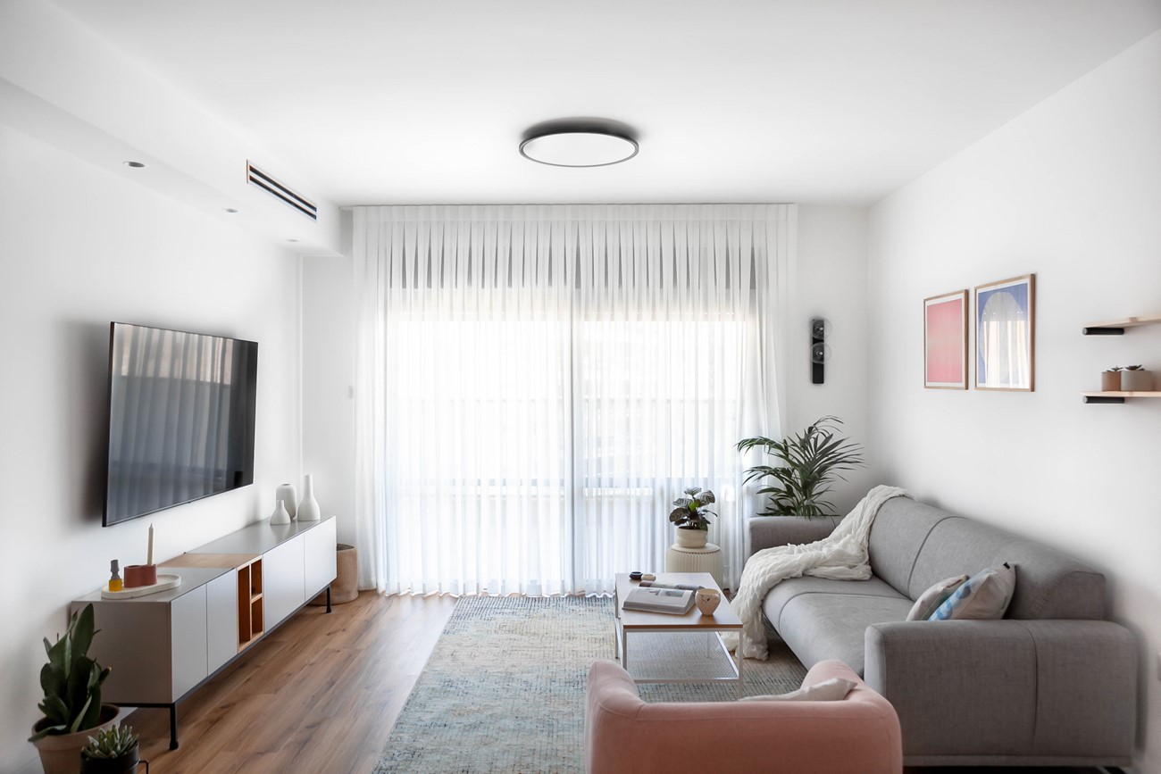 האתגר הגדול בפרויקט היה הפיין טיונינג של החומרים, הדיוק בצבעוניות ובטיב ובכמות של האקססוריז. המינון הנכון היה כאן שם המשחק. לחלק מאיתנו יציאה מאזור הנוחות מתבטאת בהפרשי גוון מזעריים, הוספת פריט אחד ״מיותר״, שימוש בחומרים דרמטיים או דומיננטיים מידי. הפתרון הוא קודם כל רקע אחיד ורגוע, במקרה הזה – לבן, ריהוט בגוונים ניטרליים, ריהוט משלים אוורירי כמה שניתן ורמיזות של צבע באמנות, באקססוריז ובטקסטיל.