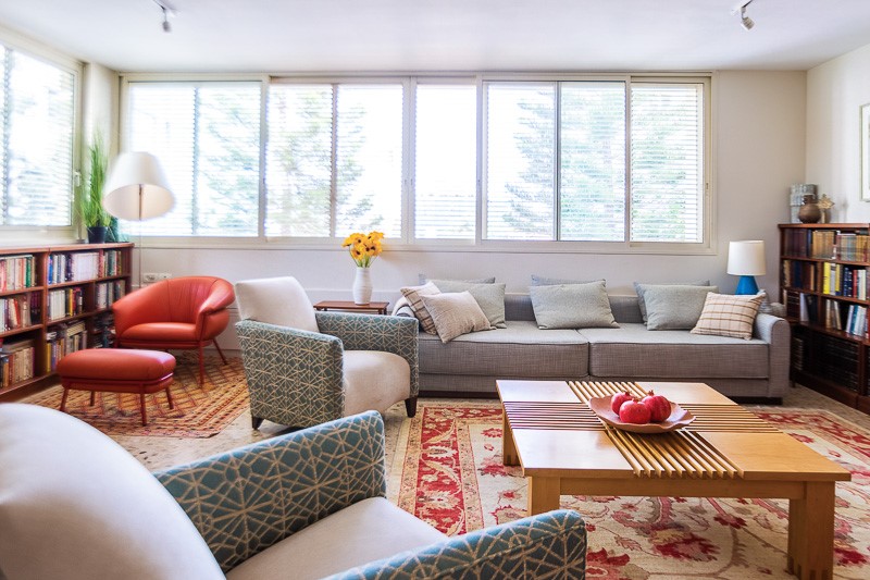 מצד שני: כשרוצים לחדש, כשרוצים שהבית יהיה קליל יותר, מואר יותר ושמח יותר. מה עושים? מלבישים את הקיים! הריפוד, התאורה האמנות, והשטיחים קיבלו מתיחת פנים עם טאץ׳ רענן.