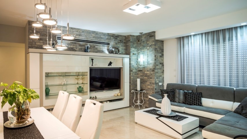 בבית זה הקטנו חדר אחד שהפך לחדר ארונות והחלק נספח לסלון - הפך לקיר הטלויזיה