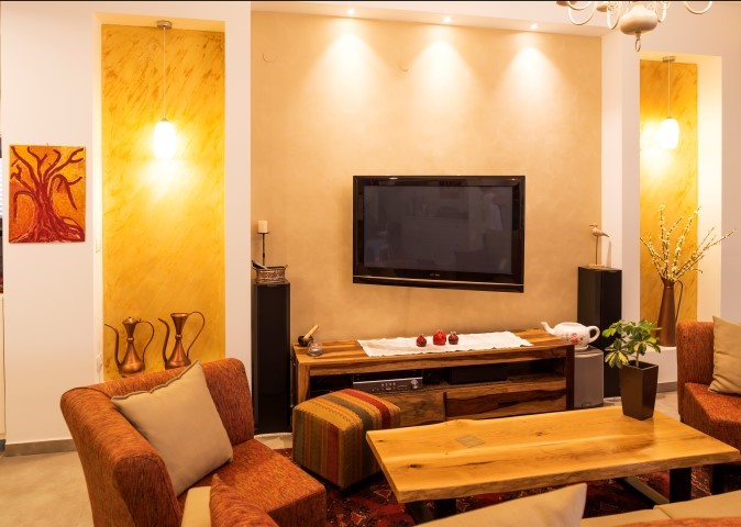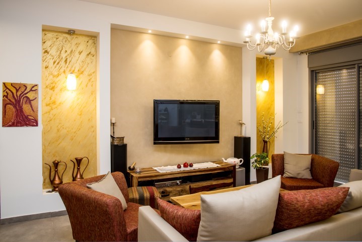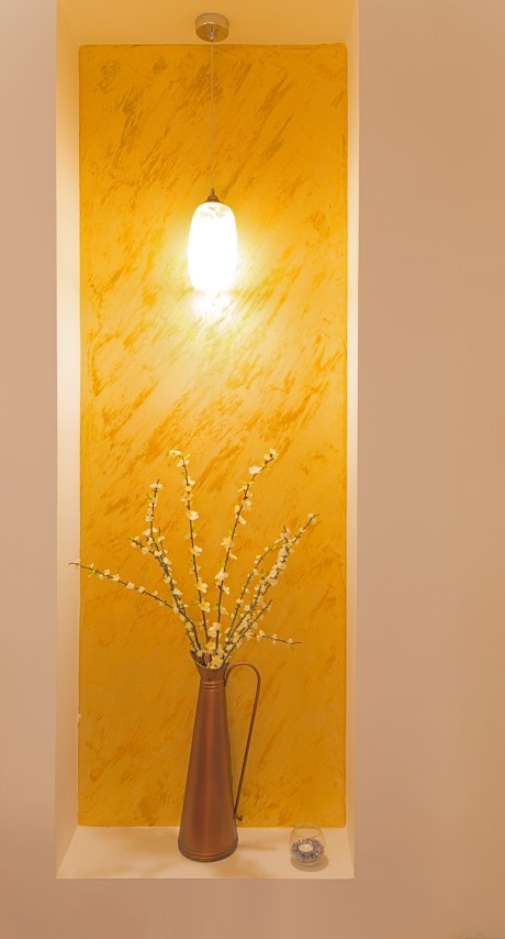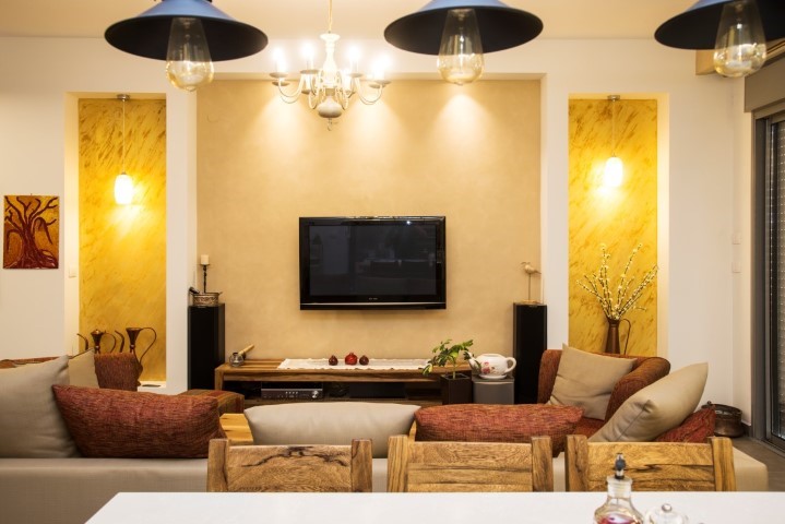 בסלון נבנתה נישה שקיבלה גם גוונים של זהב