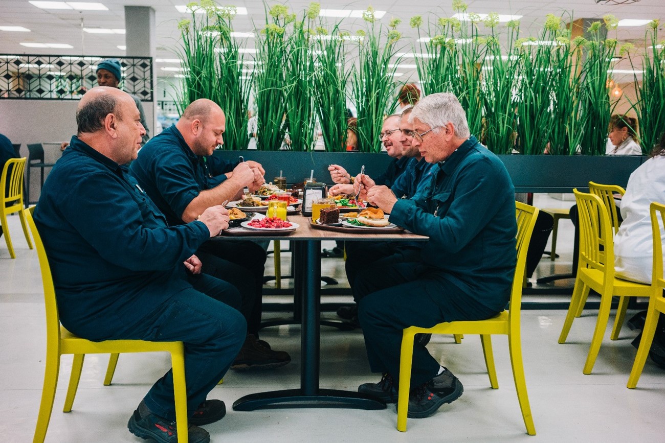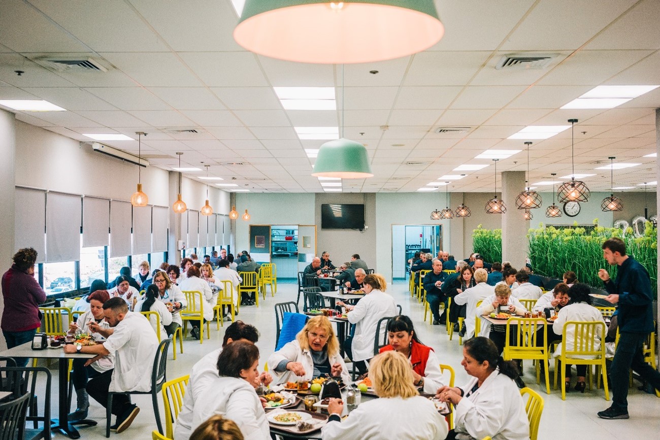 חדר האוכל במפעל וישי בבאר שבע המייצר רכיבים אלקטרוניים לתעשיות שונות, פעיל פעמיים ביום ומזין בכל פעם כ- 1000 עובדים ועובדות בשטח של 1000 מ"ר .