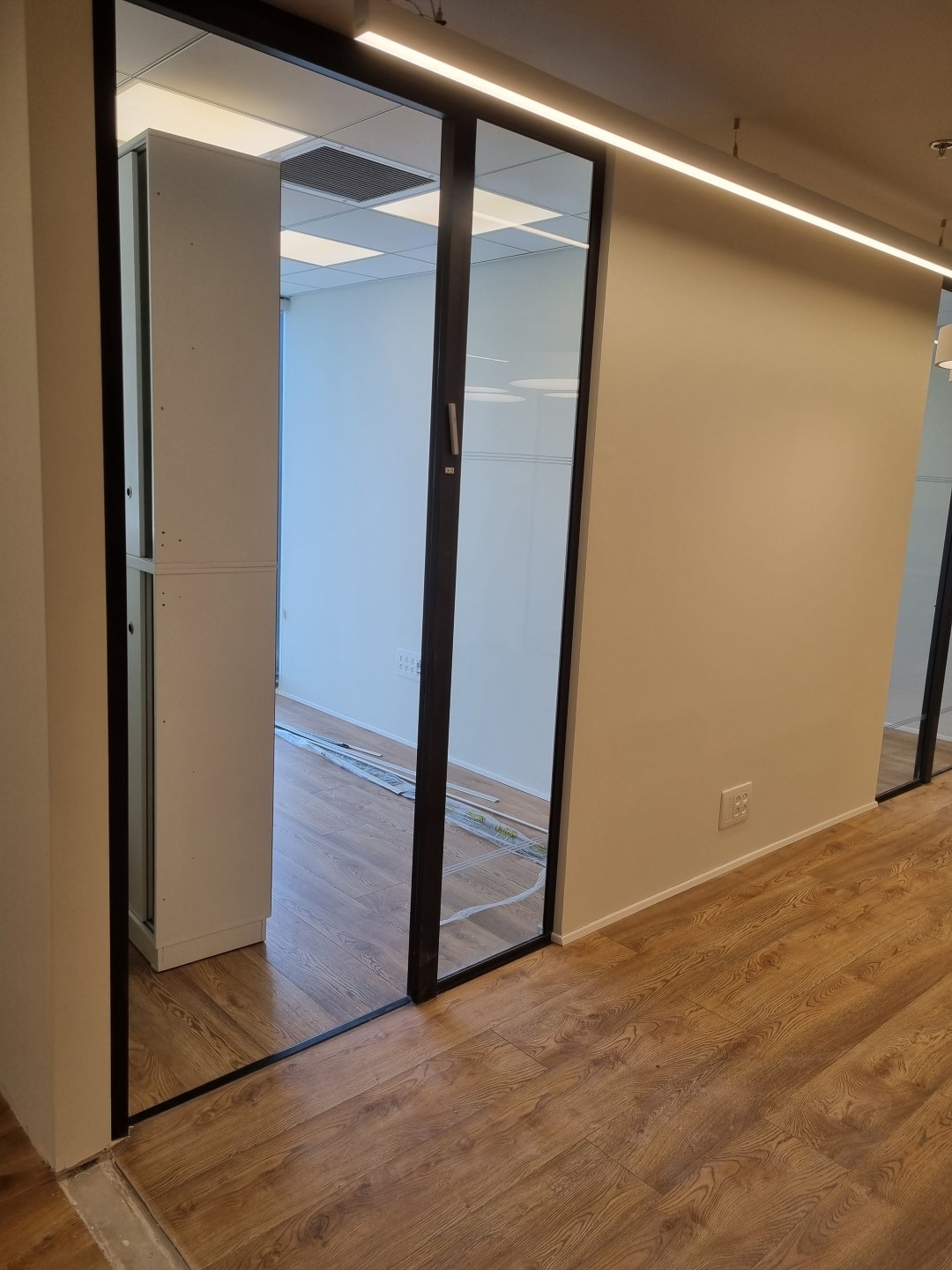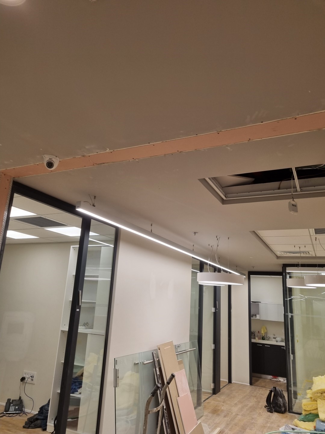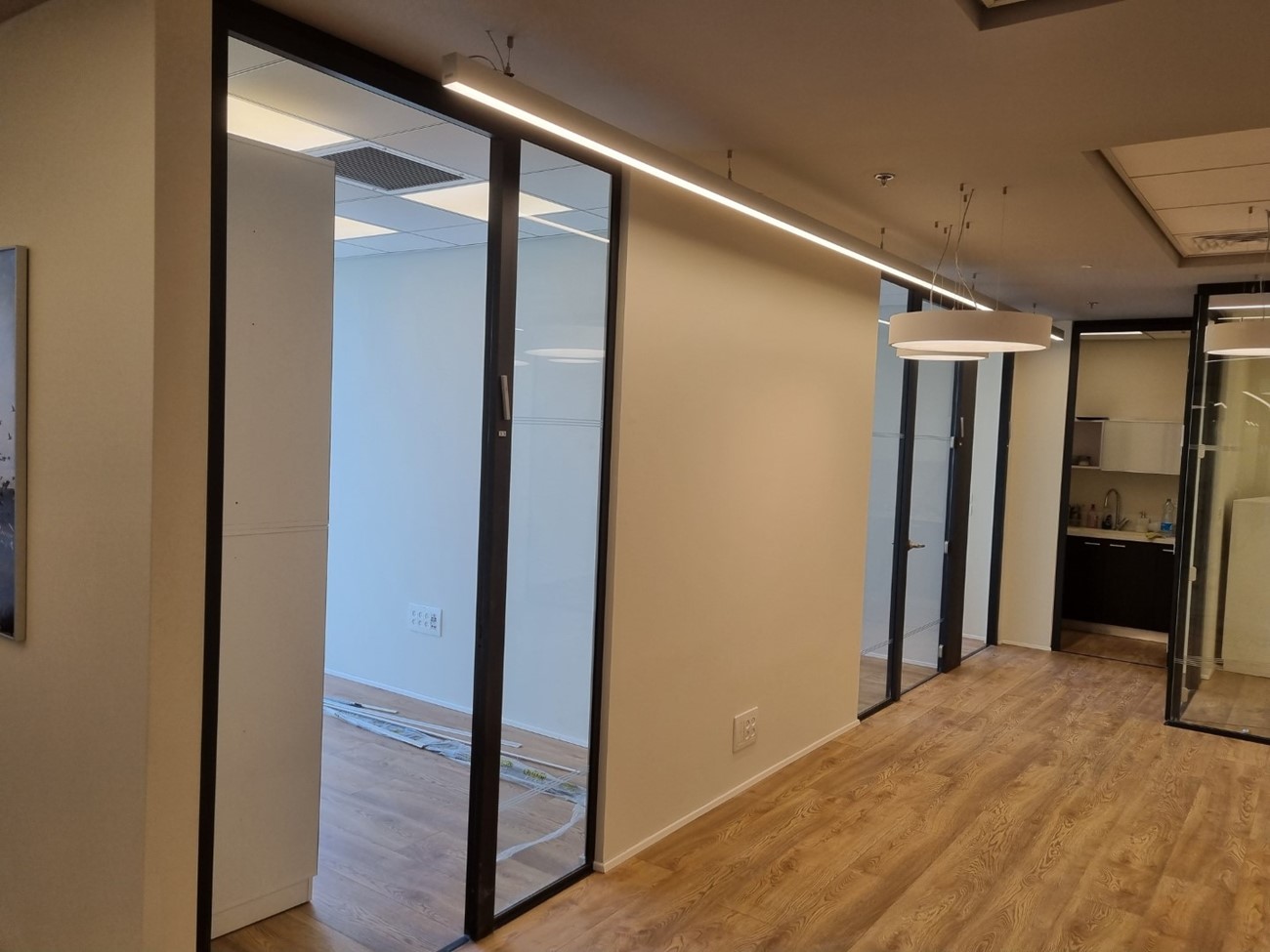 העבודה כללה פירוק קירות גבס ובניית קירות גבס חדשים, הזזת נקודות חשמל ותקשורת, הקמת מחיצות זכוכית וכמובן צבע.