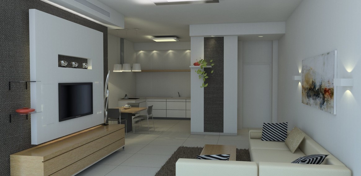 תכנון הדירה הותאם לצרכי הלקוחות שביקשו חלל מעוצב בקווים נקיים כשהצבעים הדומיננטיים הם אפור ולבן.