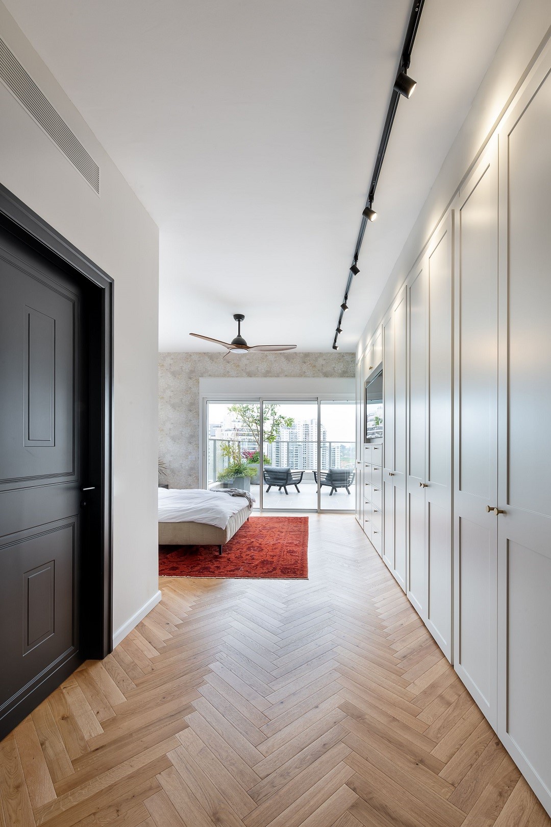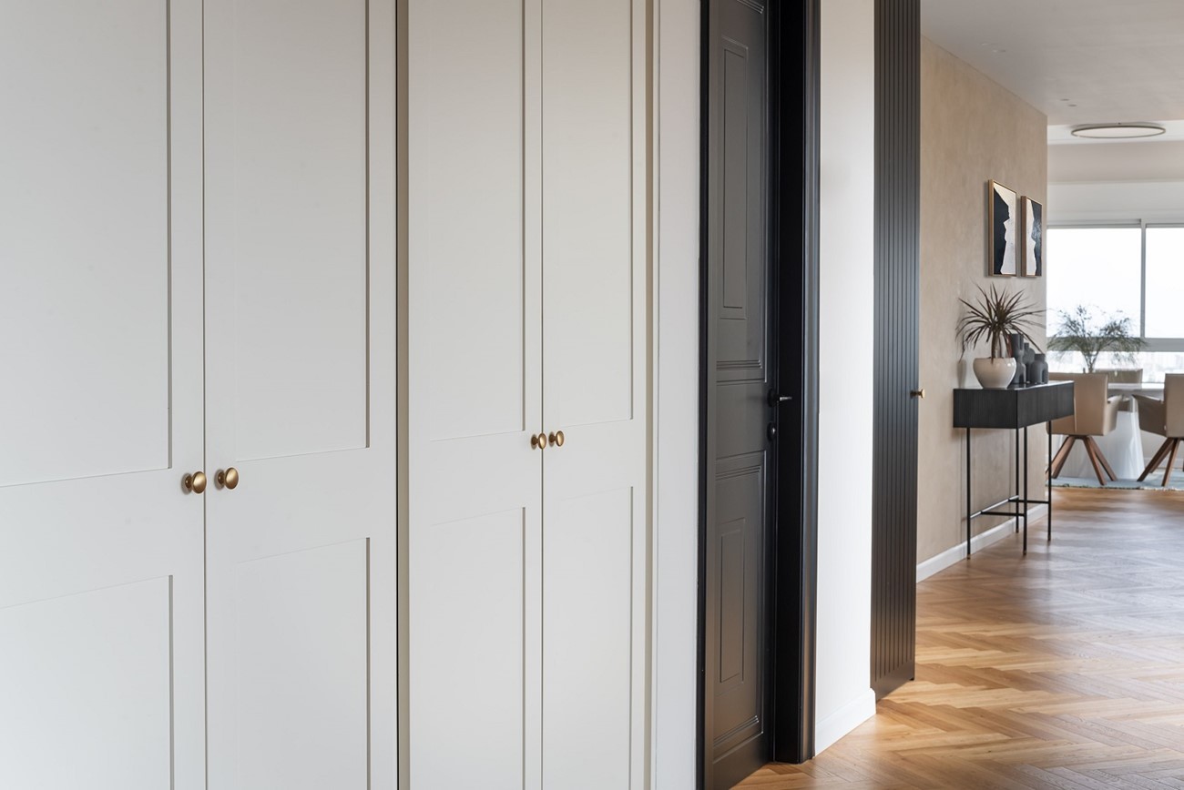 בפנטהאוז ביצענו את כל עבודות הנגרות החל מהמטבח ועד חדרי השינה כולל ארון קיר באורך 6 מ' במאסטר לנוחות מירבית ומפנקת.