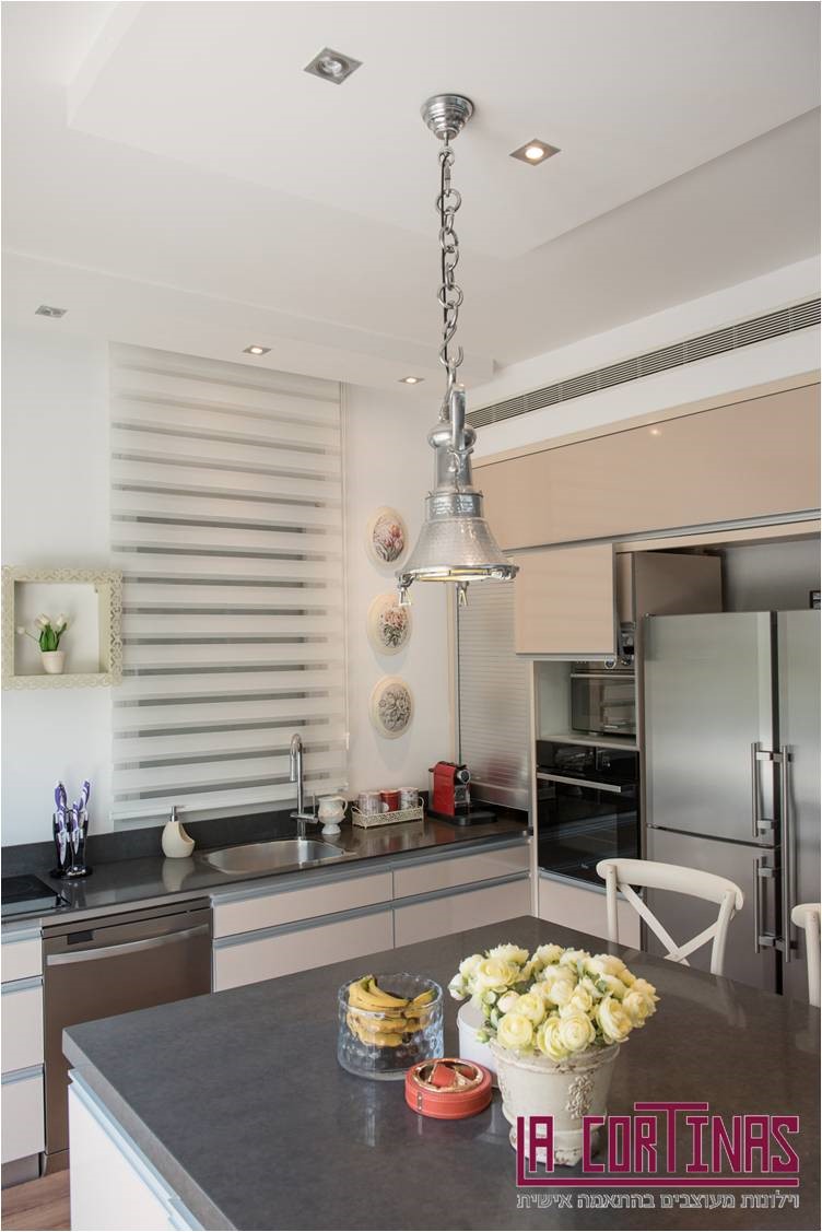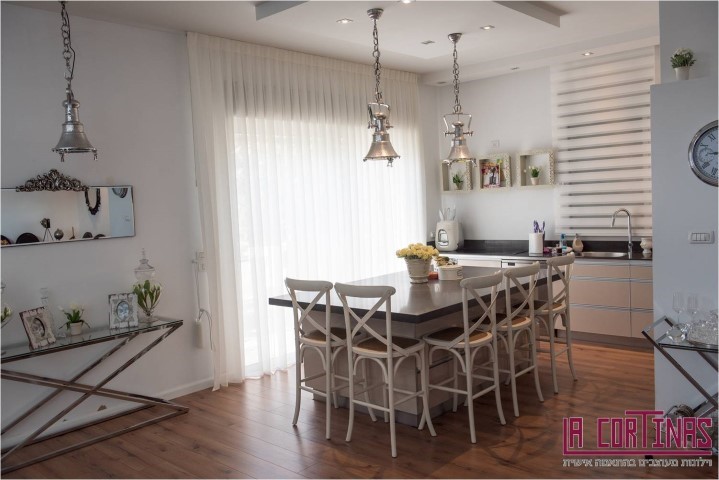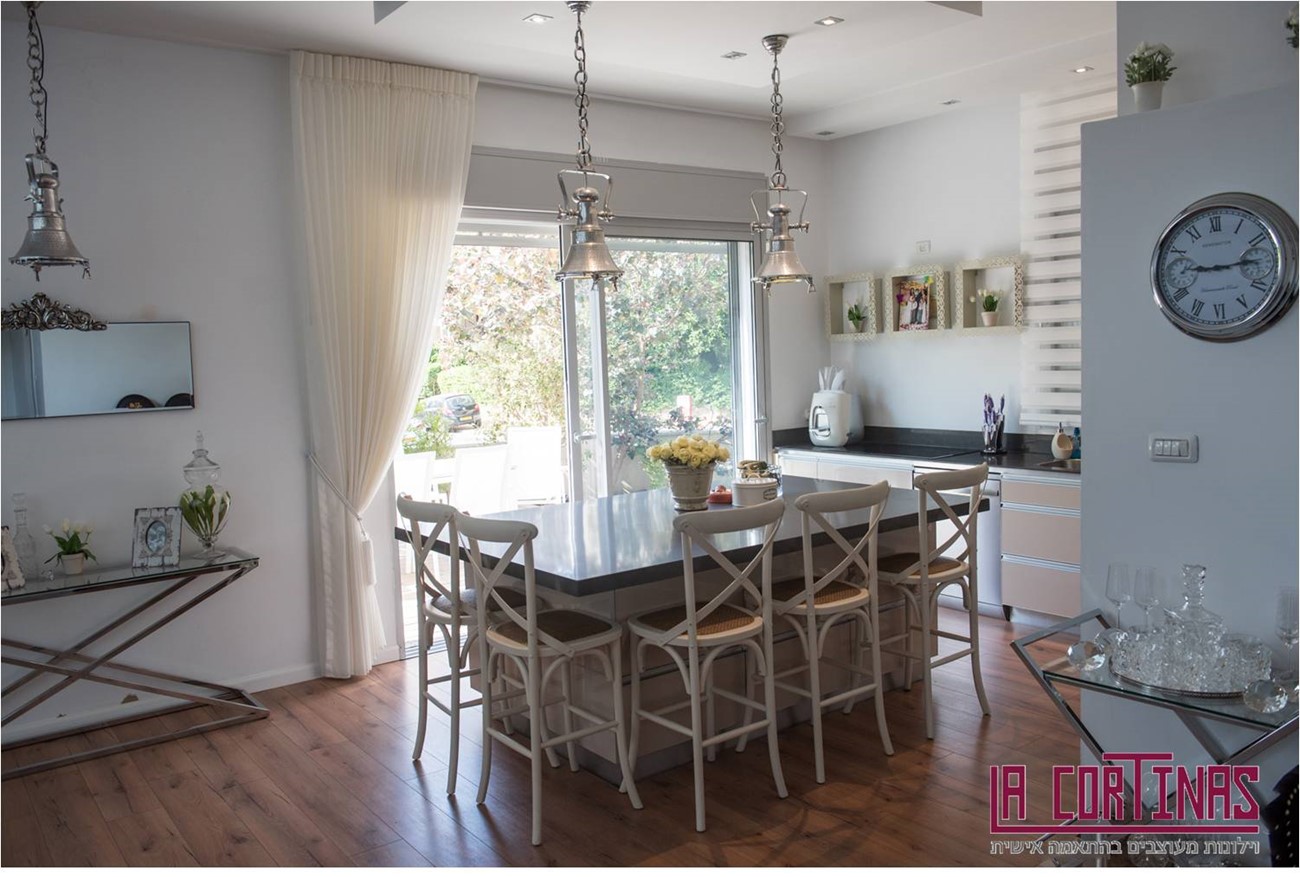 בחלק מוילונות אלו, שינינו את סוגי התפירה - לתפירה הנקראת סרט כוורת במטבח ובחדרי הרחצה התאמנו את מוצר ההצללה סאן סטריפ,