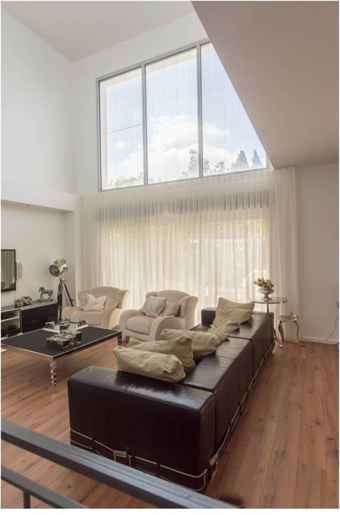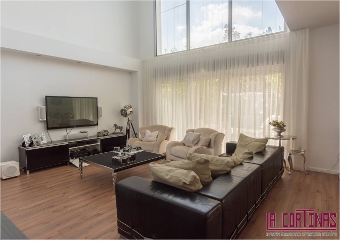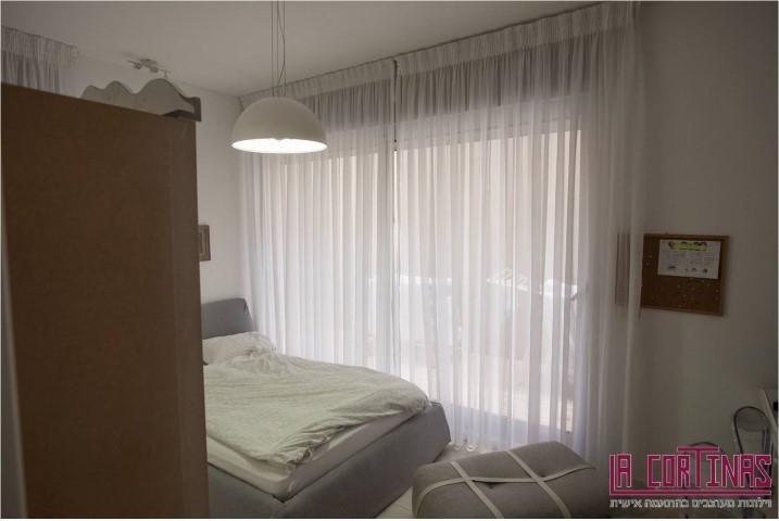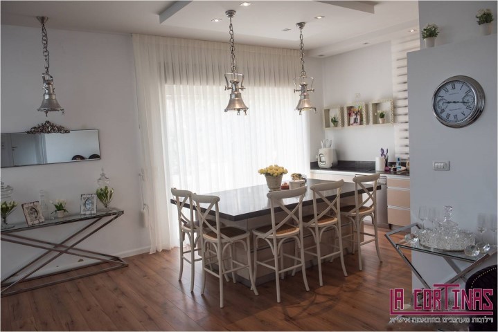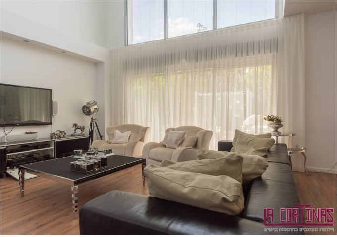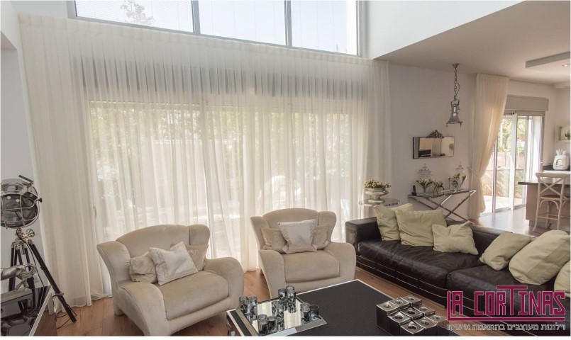 וילונות דקורטיביים בתפירה קלאסית עם בדים חצי שקופים.
