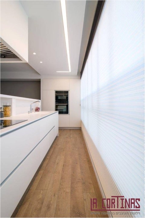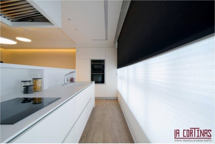 הפתרון המדוייק לכך היה וילון דואט קומבי המאפשר מגוון פתרונות בו זמנית, לדוגמא כאן רמת האטימות והאקוסטיקה הגבוהה שהוא מסוגל לייצר. בעזרת הדואט יצרנו חמימות חדשנית בבית הלקוח וכמו כן למזער רעשים מהסביבה הסואנת.