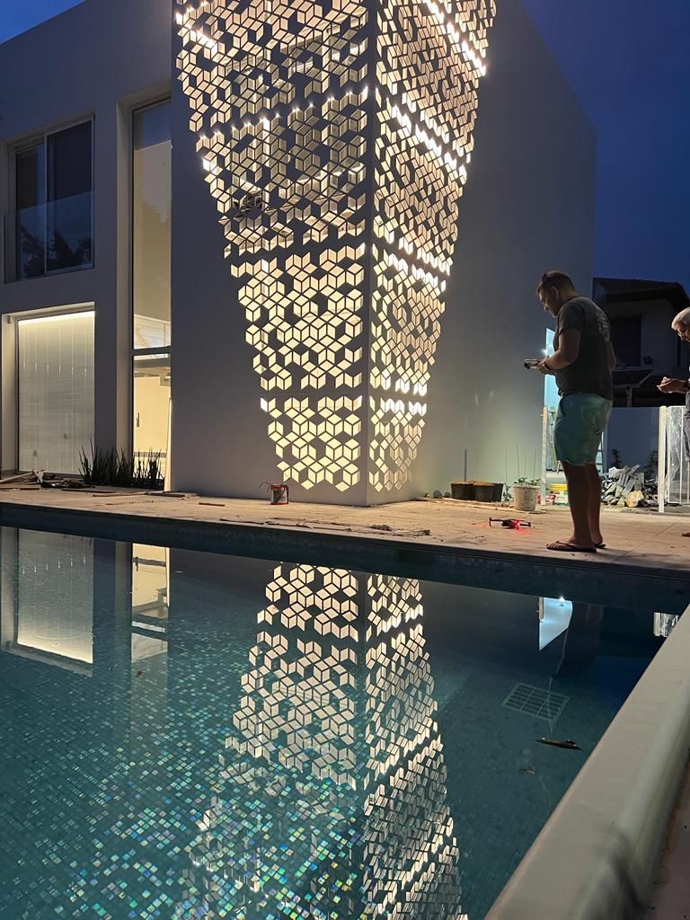 שילוב של חיפוי קיר ובתוכו מסתור כביסה אלוקובוד עם עיטורי חריטה בהזמנה אישית