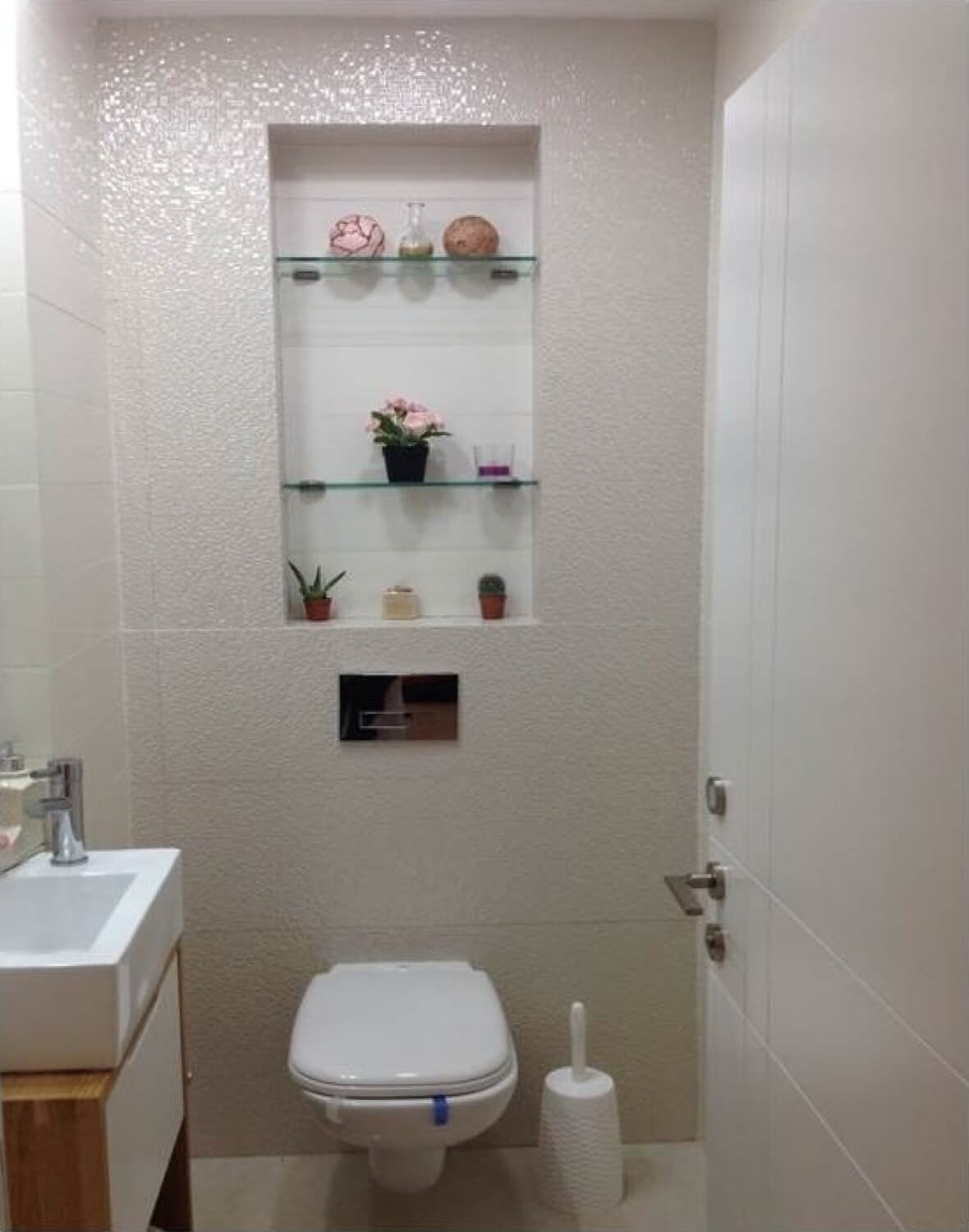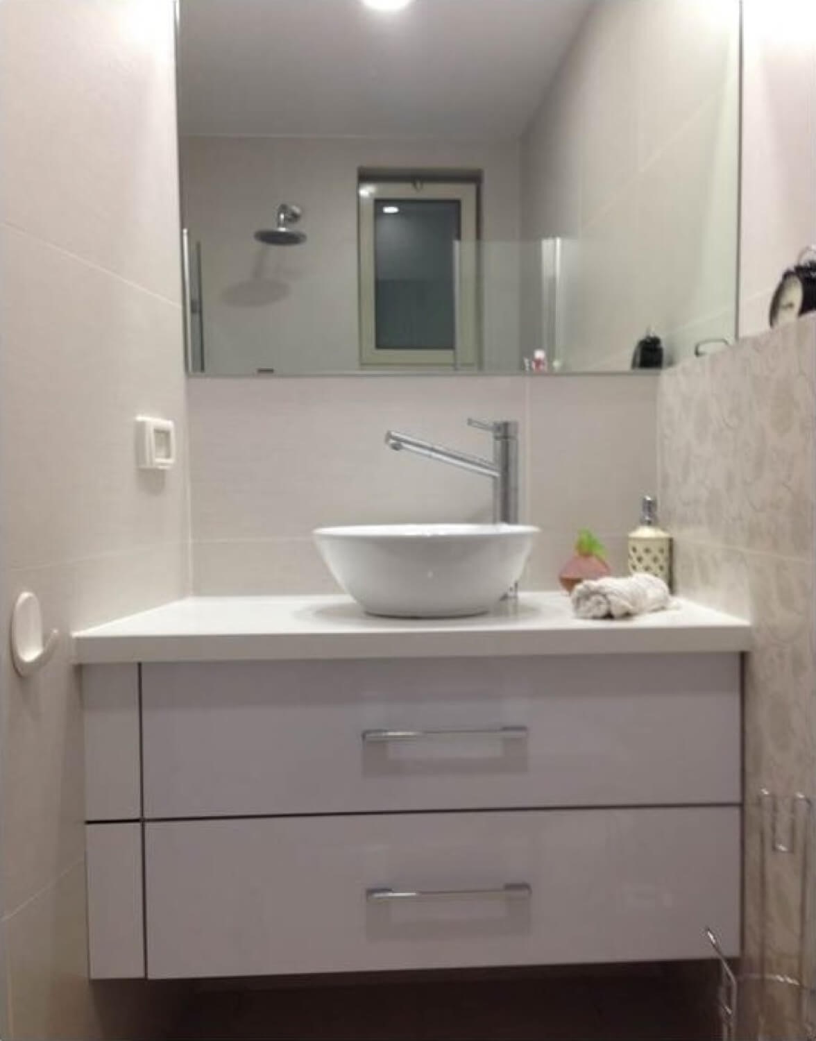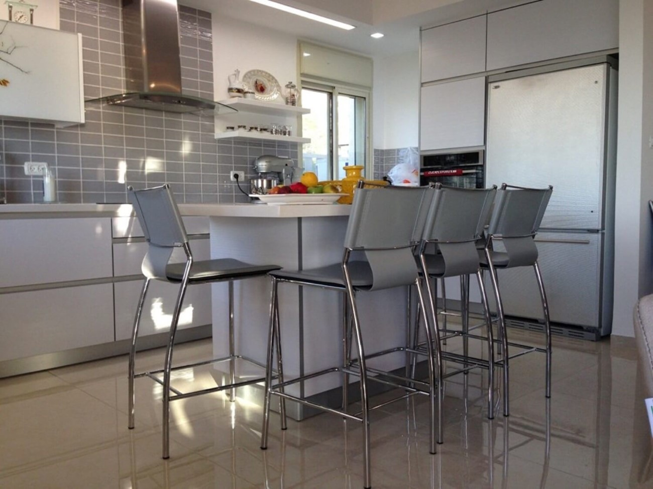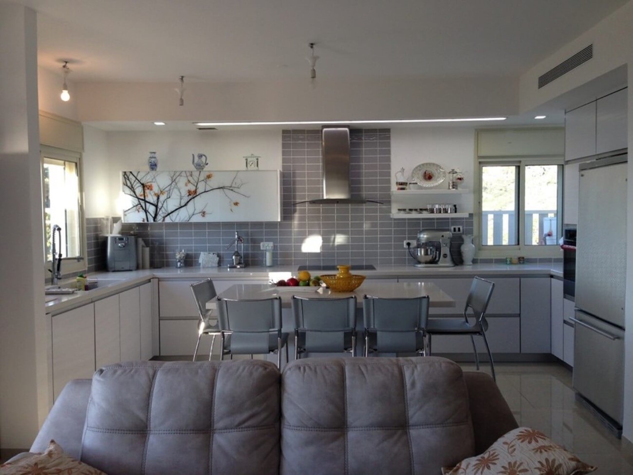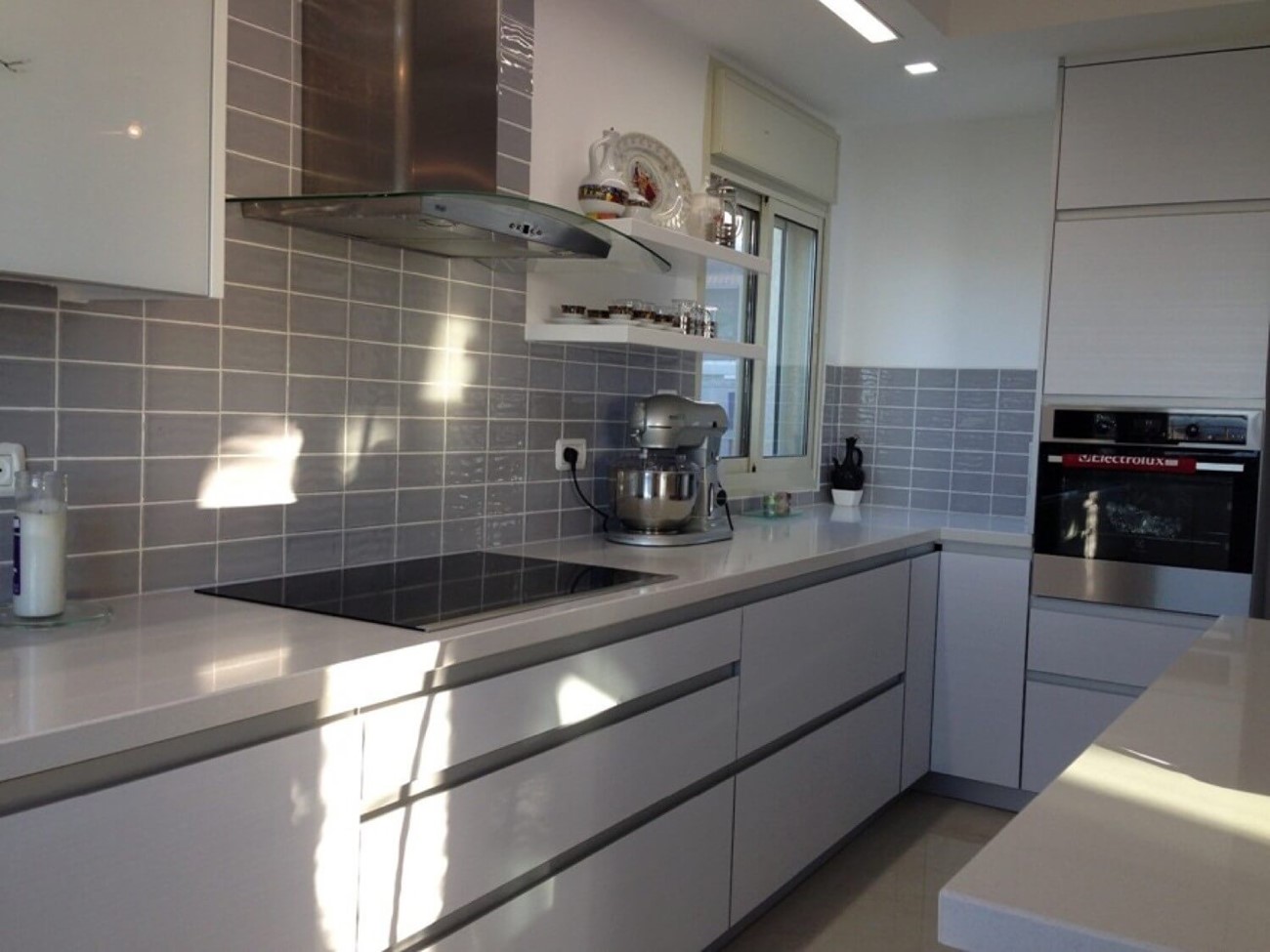דירה שתוכננה במקור כחללים סגורים, שינתה פניה לדירה עם חללים פתוחים ומרווחים. סגנון מודרני, מטבח פתוח בצבעי לבן אפור עם אי ריבועי במרכזו. תכנון ועיצוב חדרי רחצה נוחים ובצבעים בהירים.