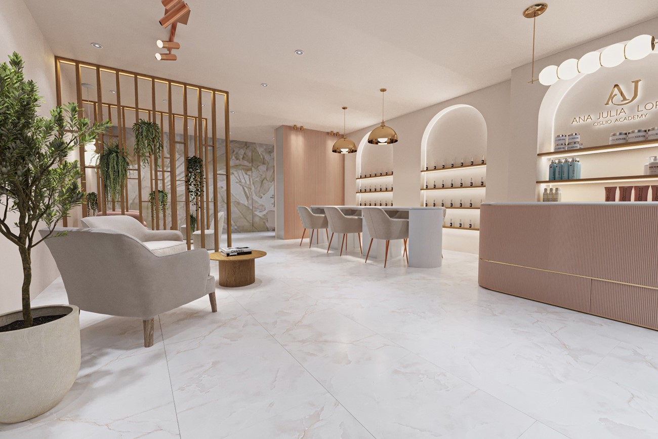 מכון קוסמטיקה עם סטייל בתכנון נכון. לכל דבר יש מקום יעודי לו, בבחירת חומרים הכנסנו גוונים חמים ותאורה שנותנת אופי לכל רהיט. דלפק הקבלה בתכנון נגרות מוקפד ושילוב שיש קוורץ למשטח עבודה
