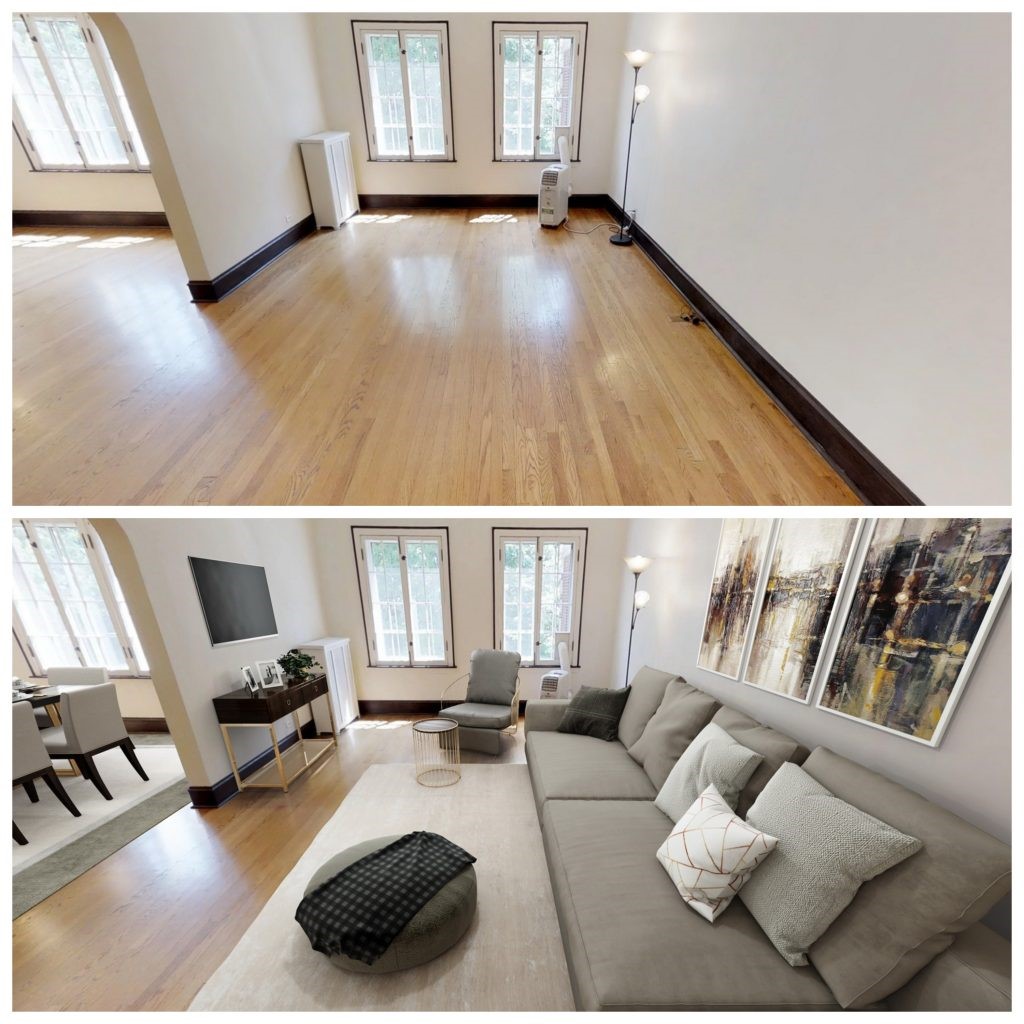 תהליך של שיפור דיגיטלי וריהוט חללים ריקים או מרוהטים בדלילות כדי להפוך אותם למושכים יותר מבחינה ויזואלית לצורך שיווק. בעזרת תוכנת מחשב ניתן להכניס רהיטים, קישוטים ואלמנטים עיצוביים אחרים לתוך תצלומים או מודלים תלת מימדיים של החלל. מסייע לקונים או לשוכרים פוטנציאליים לדמיין את הפוטנציאל של נכס וחדריו, וליצור אווירה אטרקטיבית ומזמינה. מציג את הפוטנציאל של נכסים פנויים או לא מרוהטים, ומאפשר לקונים או דיירים פוטנציאליים לדמיין את האפשרויות של החלל ללא צורך בהיערכות פיזית.