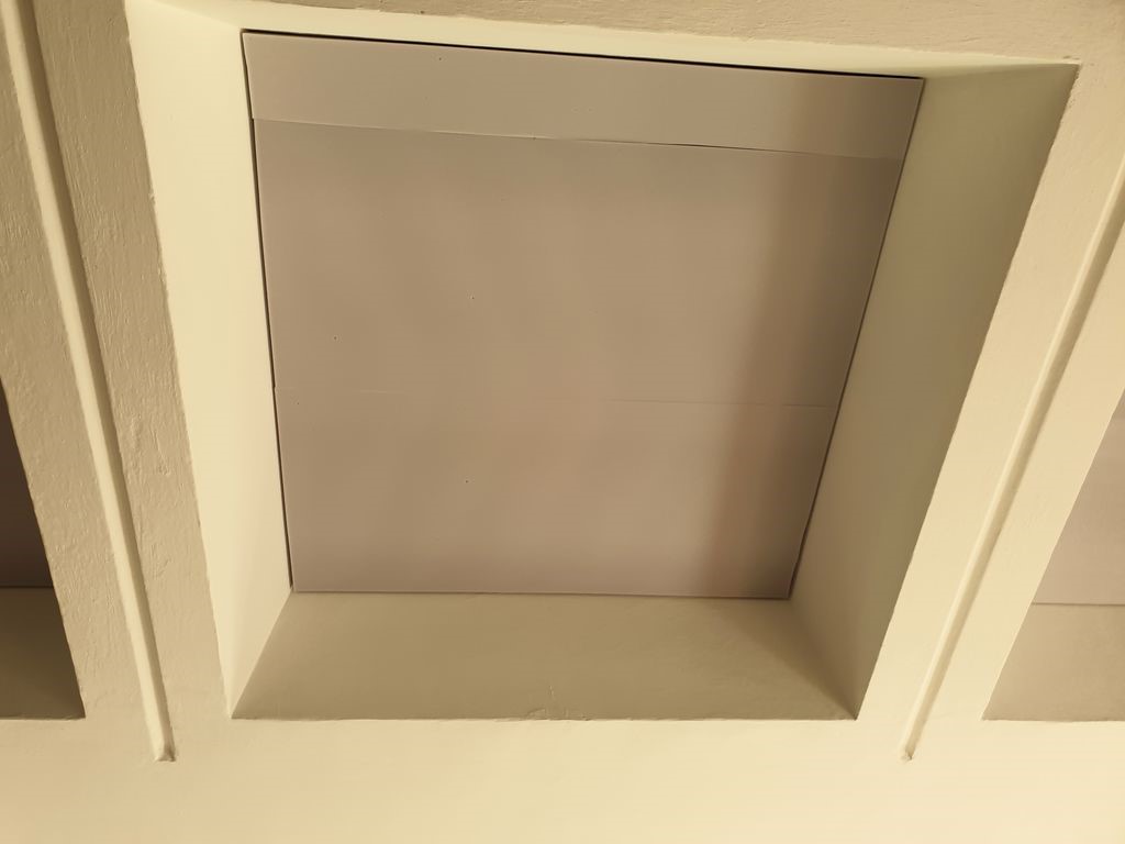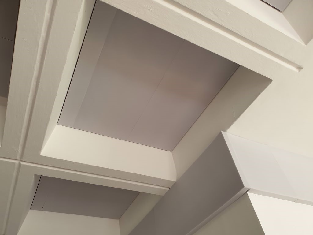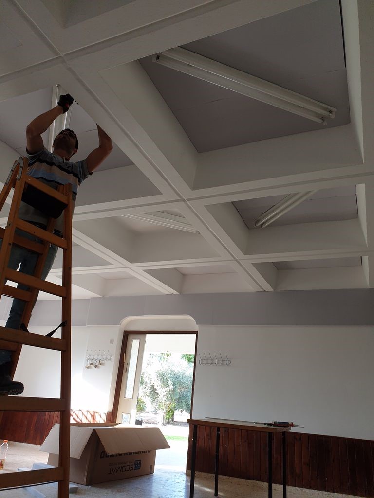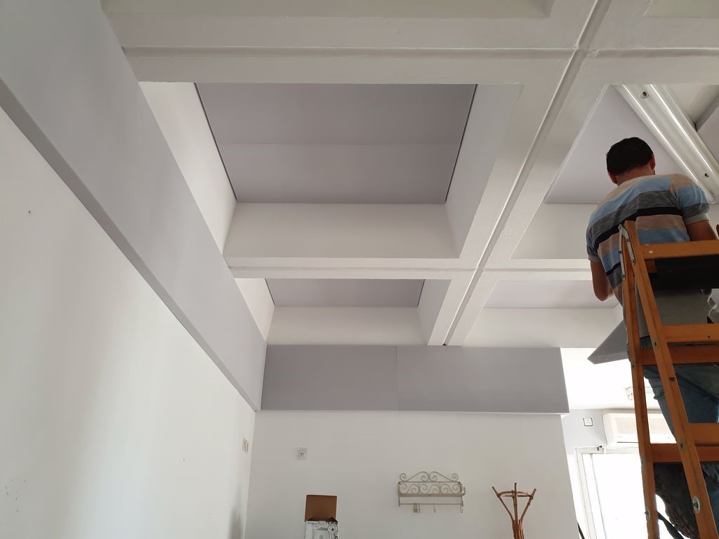 ביצוע חיפוי תקרת אמבטיות בספוג מלמין אקוסטי בחדר מוסיקה