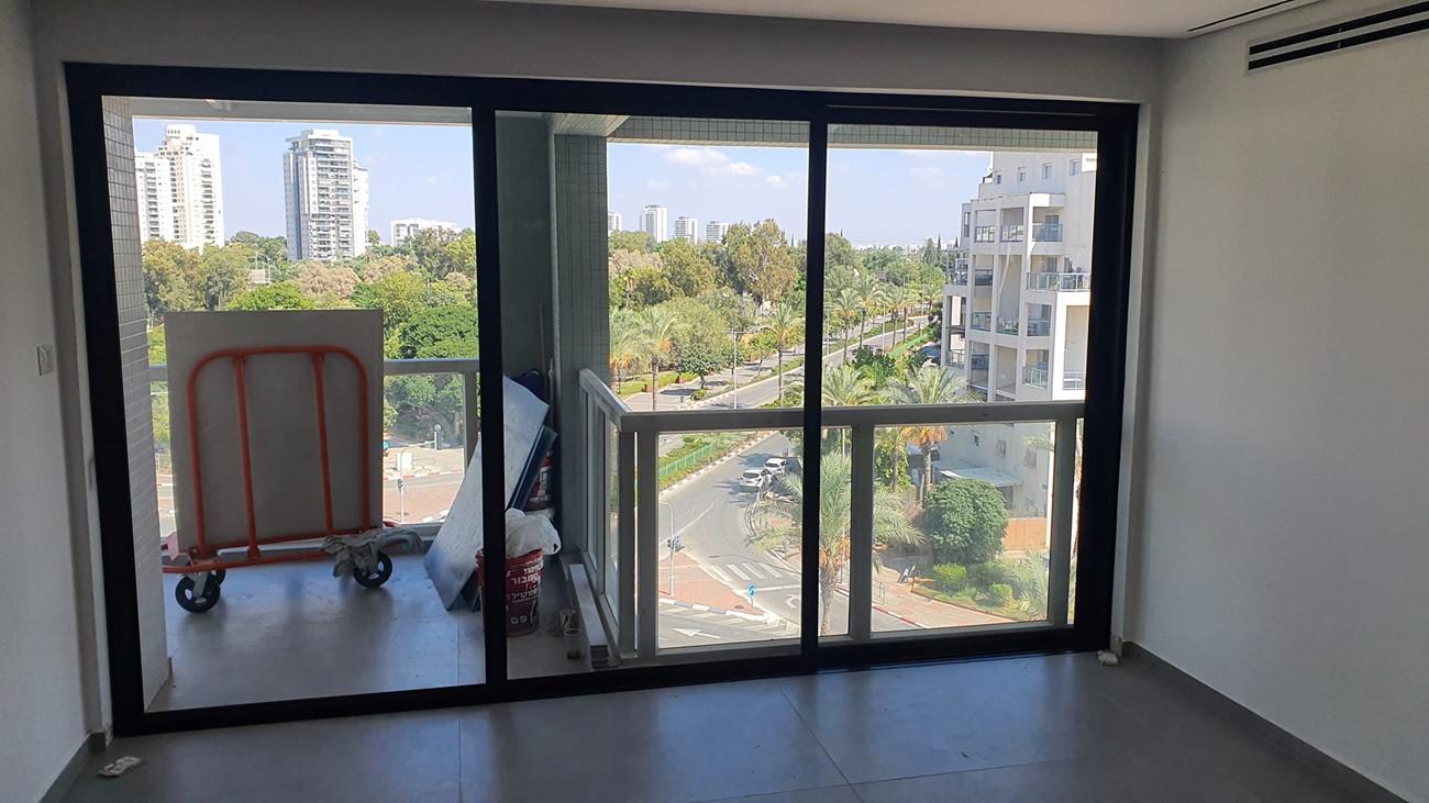 התקנת פרופיל בלגי 7300 שחור מט עם זיגוג זכוכיות בידודיות למניית רעשים סביבתיים.