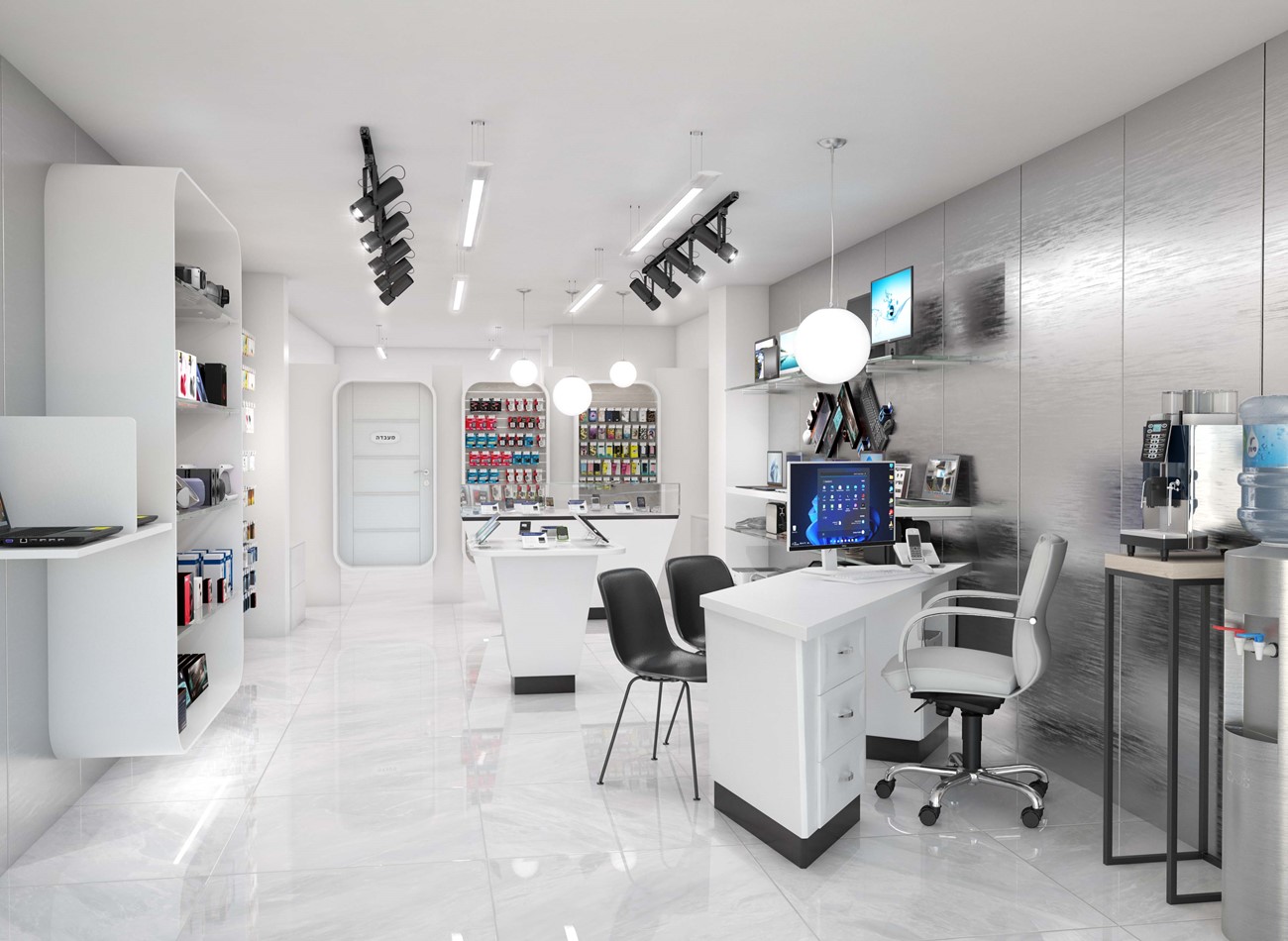 החלל כולו בסגנון הייטקי עדכני ומשדר חדשנות. מאפשר ללקוח גם להתרשם משרותי המעבדה המעולים שניתנים בחנות.