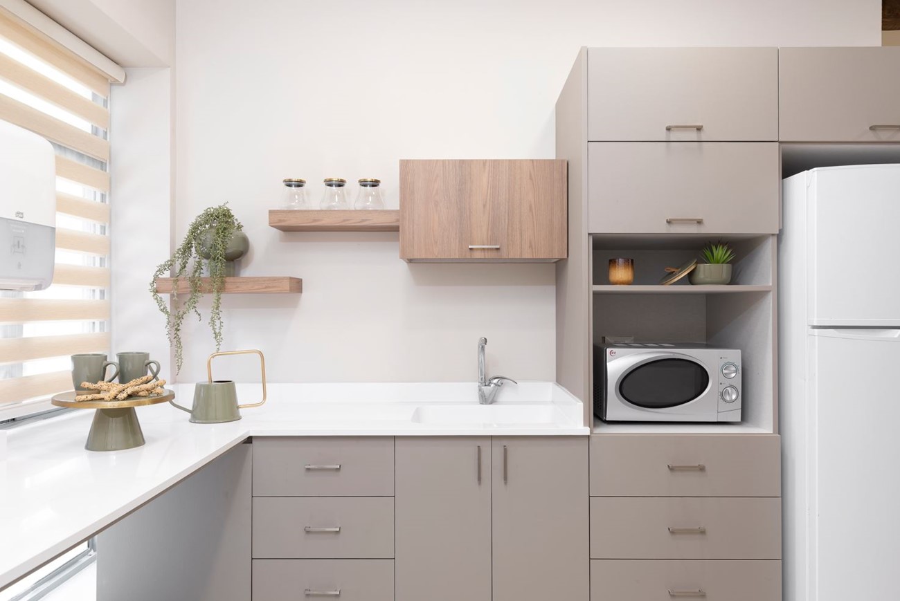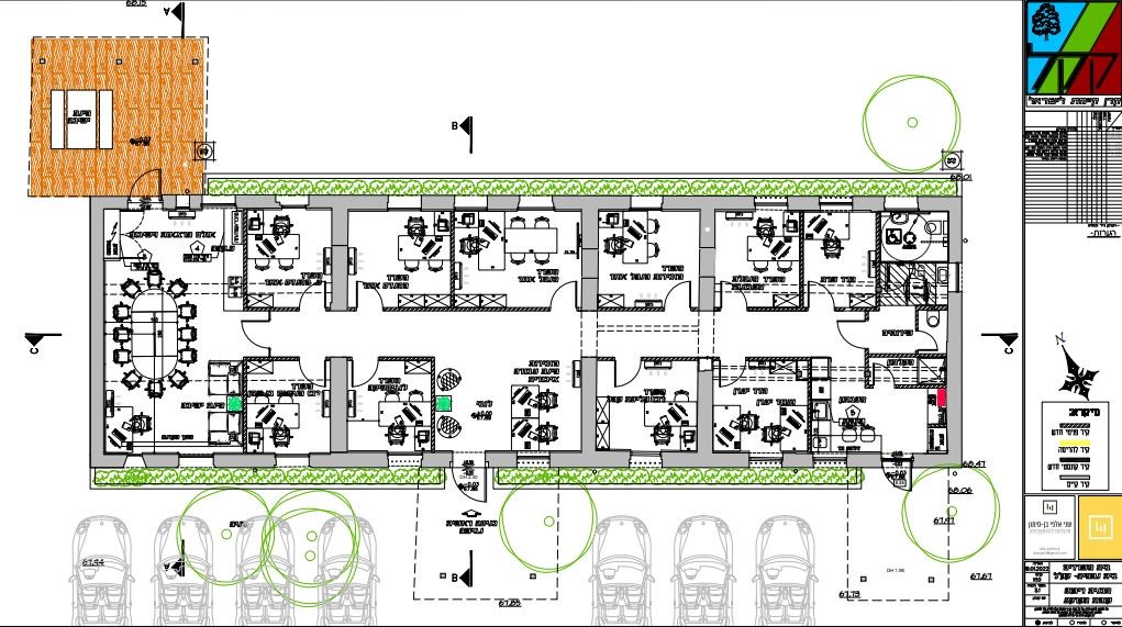 לאחר שפתרנו את הנושא הקונסטרוקטיבי שהיה מורכב כי רצינו שכל שלושת החללים יהיו באותו המפלס כחלל אחד גדול, יכולנו להתמקד בתכנון הפנים שכלל לפי הפרוגרמה 10 משרדים, חדר ישיבות מרווח, מטבחון ולובי מזמין.