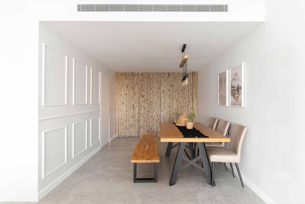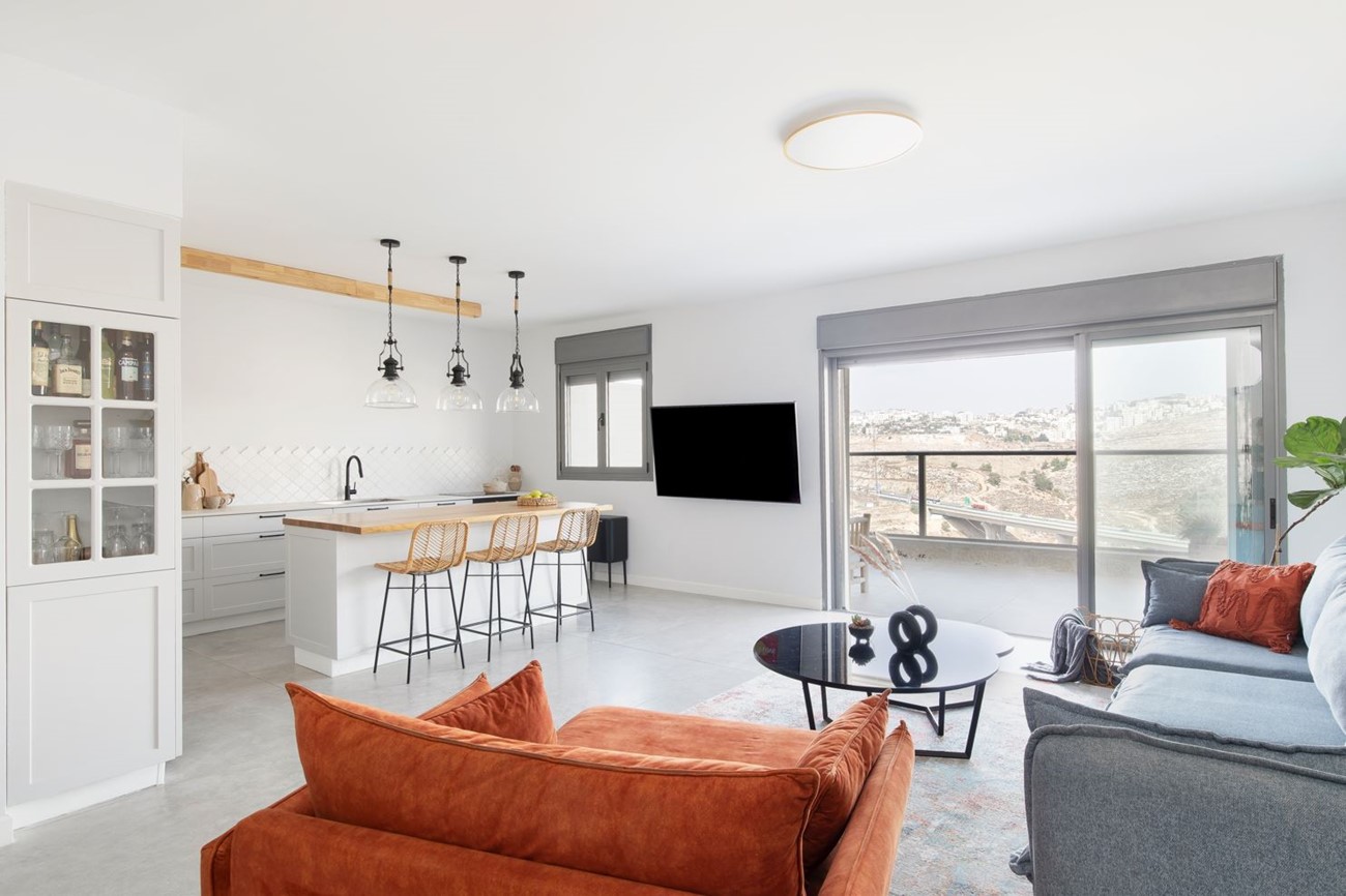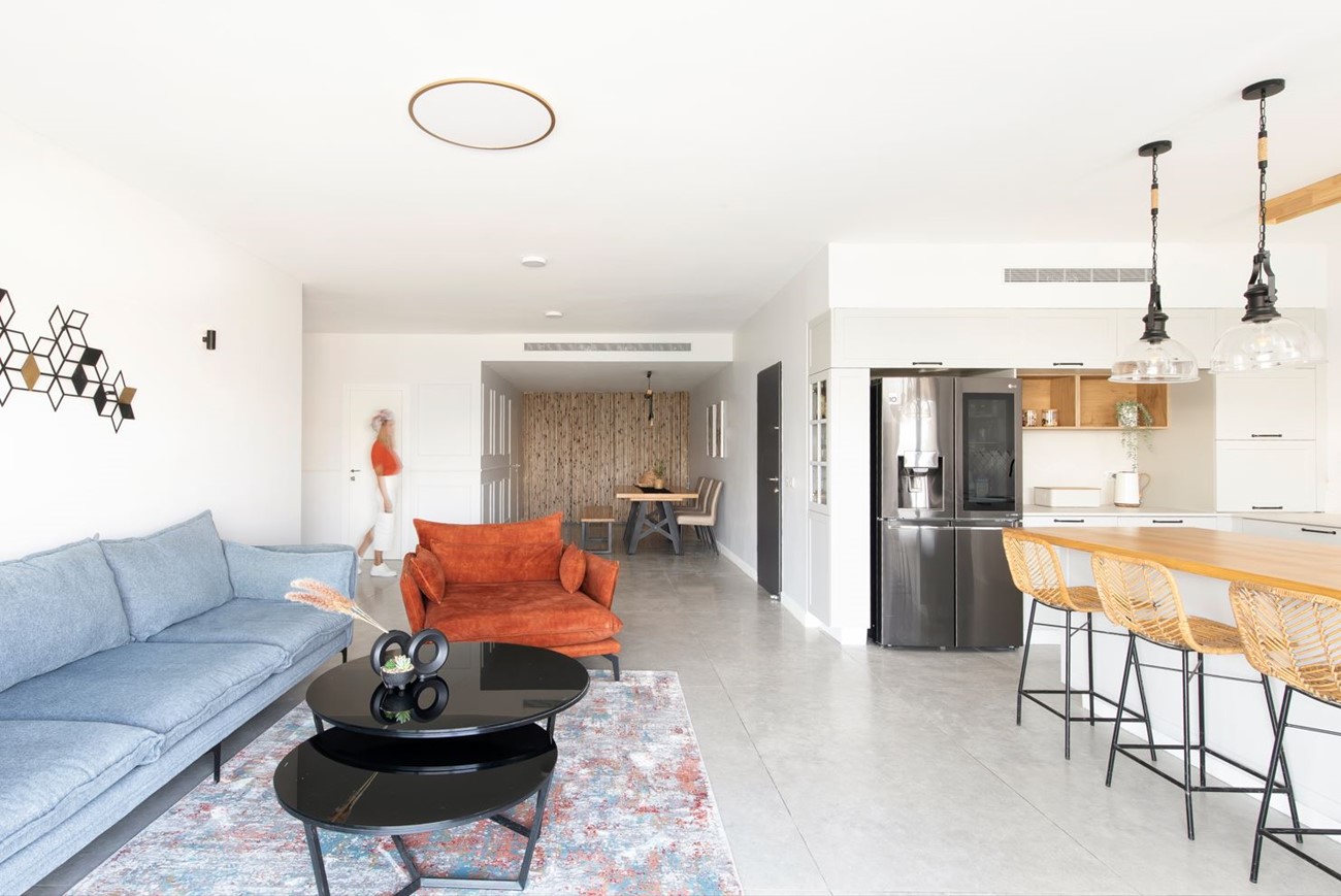 מדובר על דירת קבלן ששינינו את התכנון של המרחב הציבורי, הפכנו את הדירה מחמישה חדרים צפופה ולא מנוצלת , לדירת ארבעה חדרים מרווחת ומזמינה.